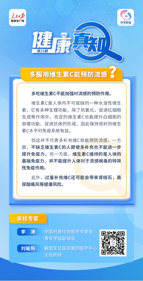 多服用維生素C能預(yù)防流感?