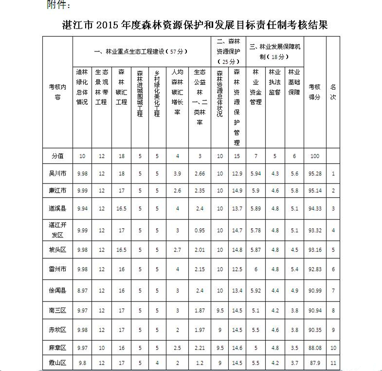 附件:湛江市2015年度森林資源保護和發(fā)展目標責任制考核結(jié)果