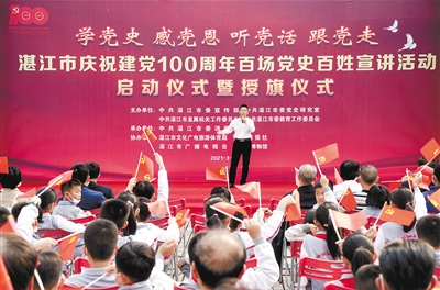 3月25日下午,由湛江市委宣傳部、市委黨史研究室、市直機(jī)關(guān)工委、市委教育工委聯(lián)合主辦,市委講師團(tuán)承辦的“學(xué)黨史感黨恩聽(tīng)黨話跟黨走”——湛江市慶祝建黨100周年百場(chǎng)黨史百姓宣講活動(dòng)啟動(dòng)儀式暨授旗儀式在市博物館舉行?;顒?dòng)將通過(guò)講好中國(guó)共產(chǎn)黨的故事和湛江紅色故事,加大黨史宣傳教育和黨史知識(shí)普及力度,做到學(xué)史明理、學(xué)史增信、學(xué)史崇德、學(xué)史力行,教育引導(dǎo)全市廣大黨員干部自覺(jué)學(xué)黨史、深刻悟思想、真情辦實(shí)事、奮力開(kāi)新局。市委常委、宣傳部部長(zhǎng)陳云參加活動(dòng)并宣布活動(dòng)正式啟動(dòng)。