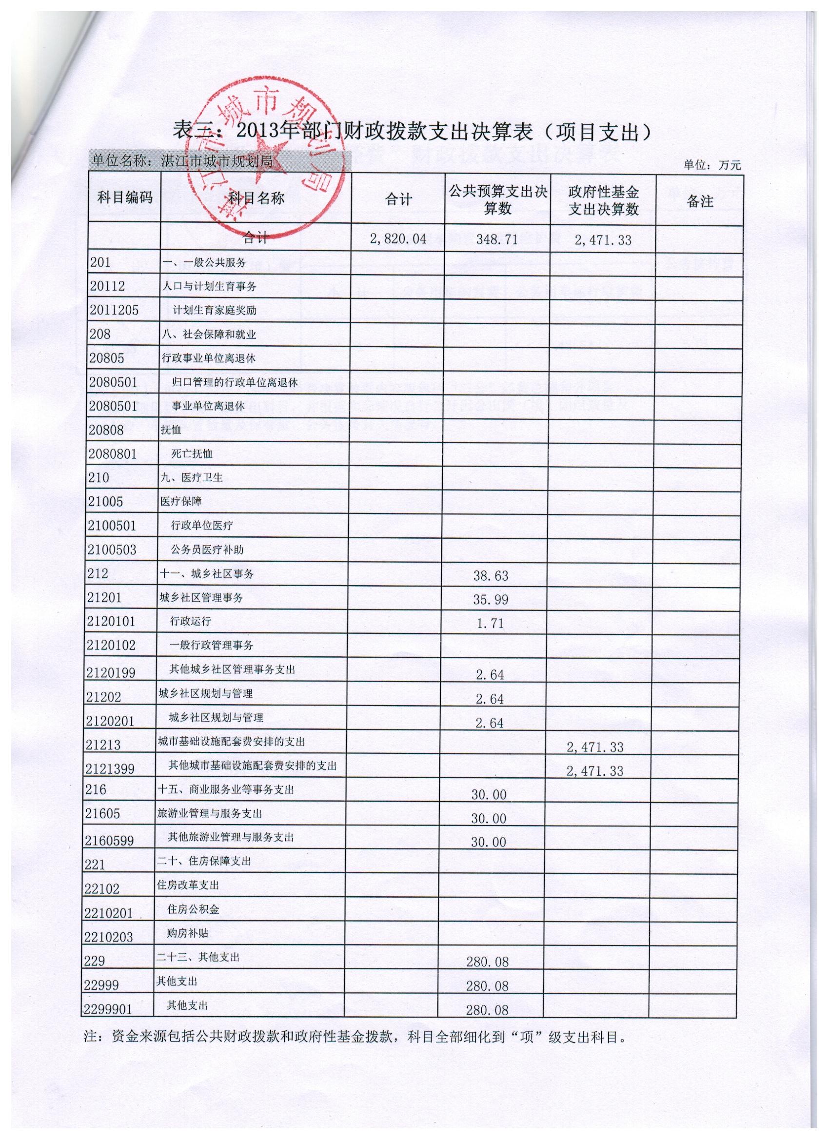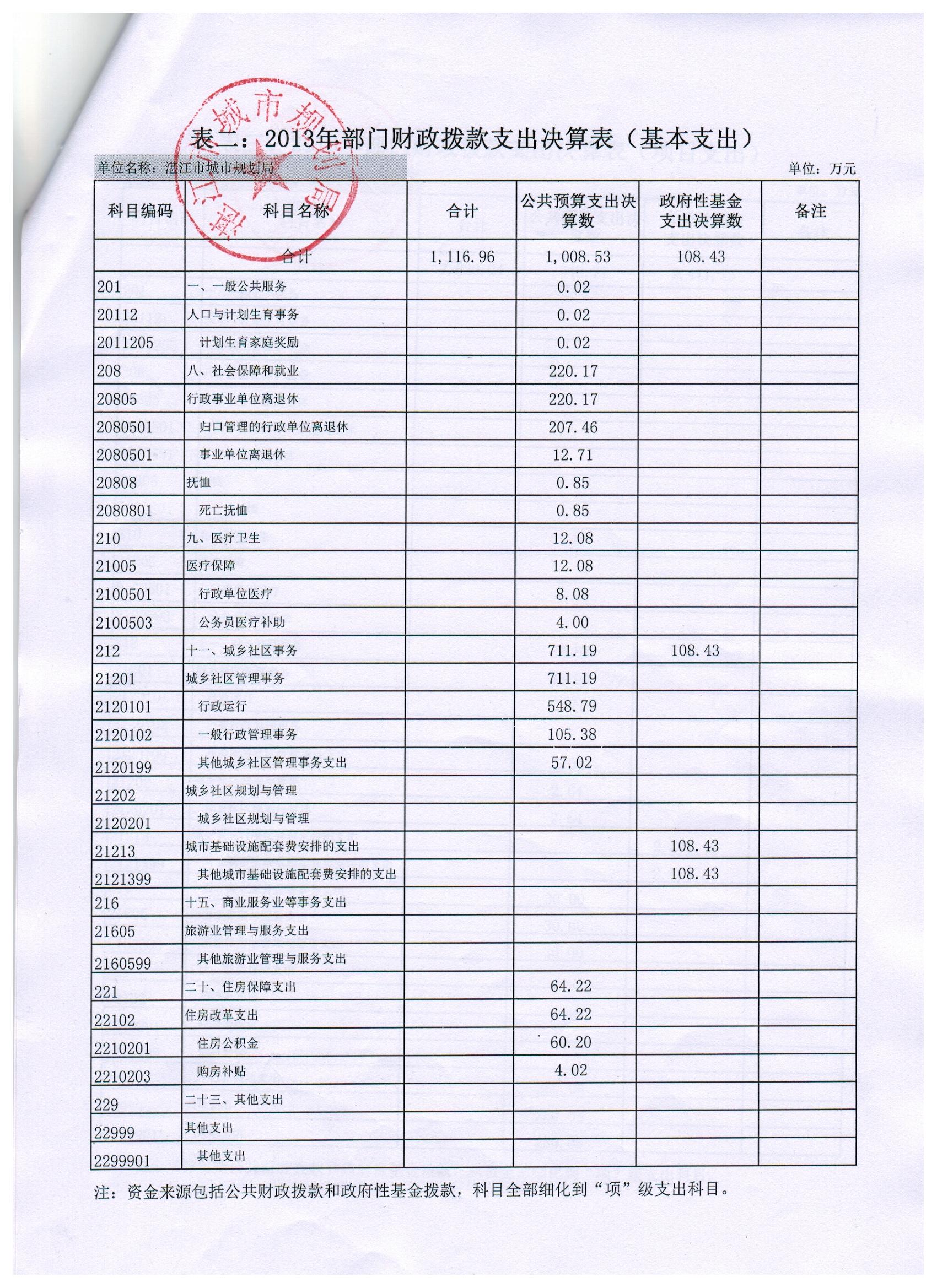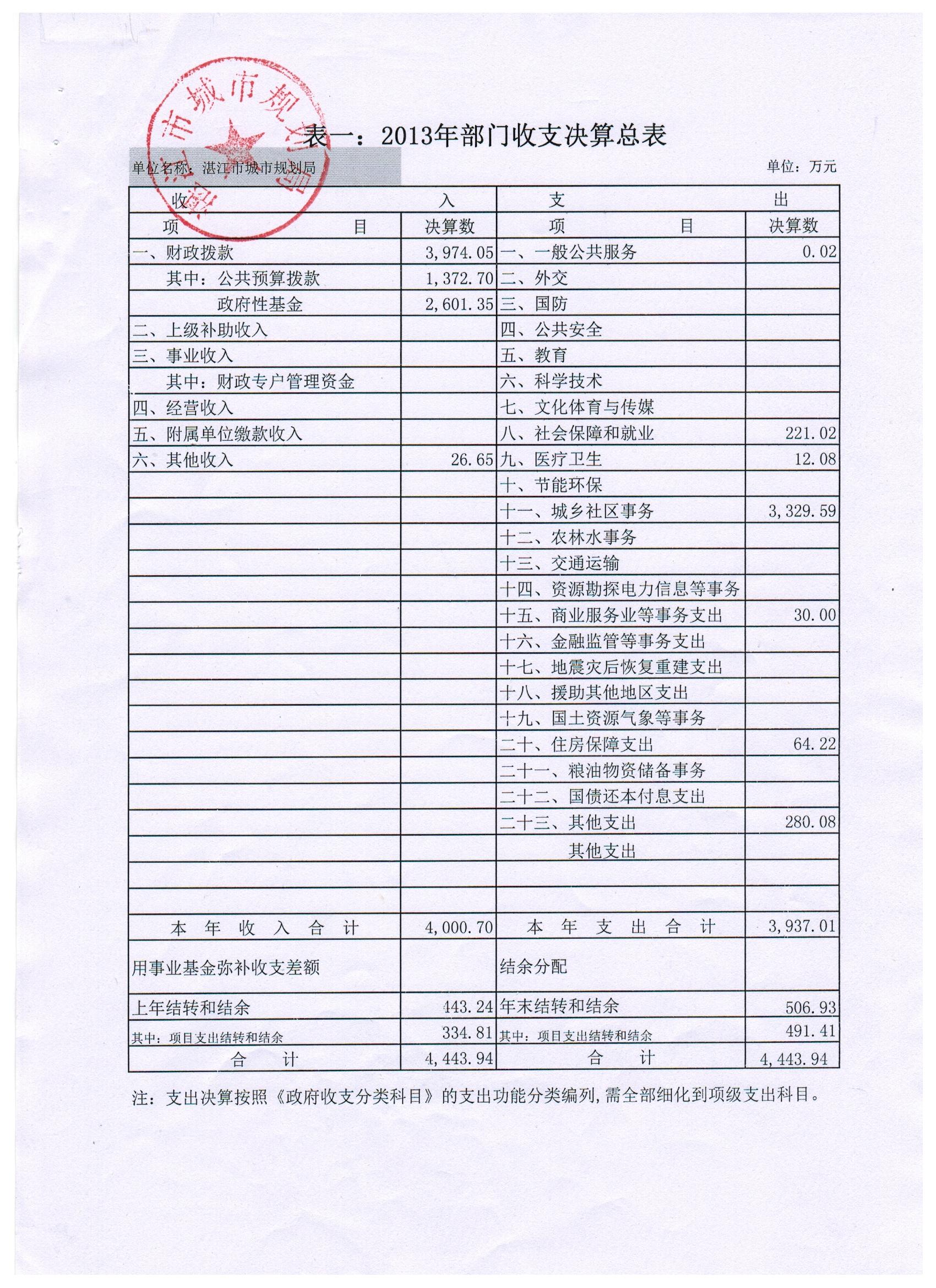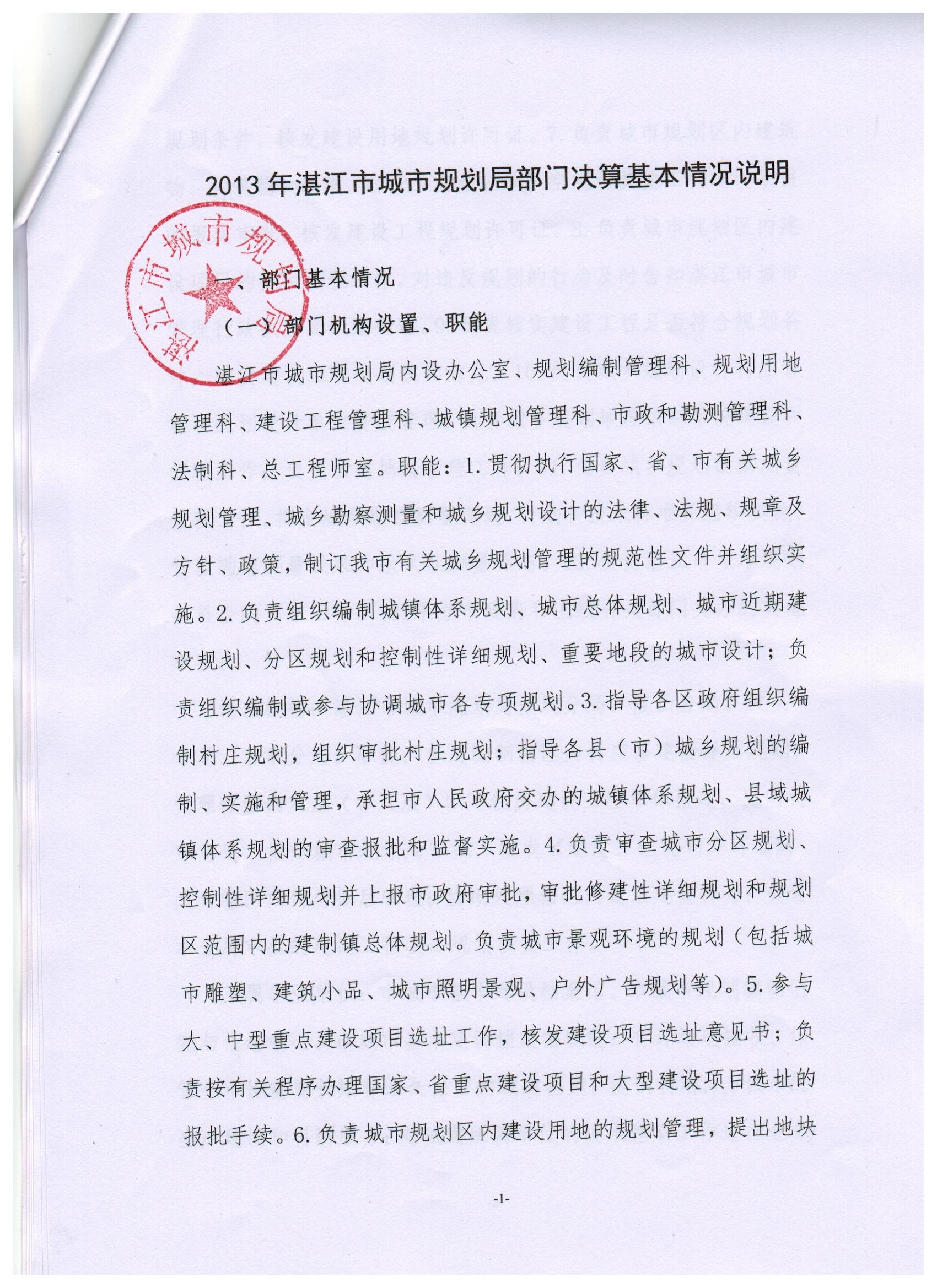 湛江市城市規(guī)劃局2013年部門收支決算及基本情況說明