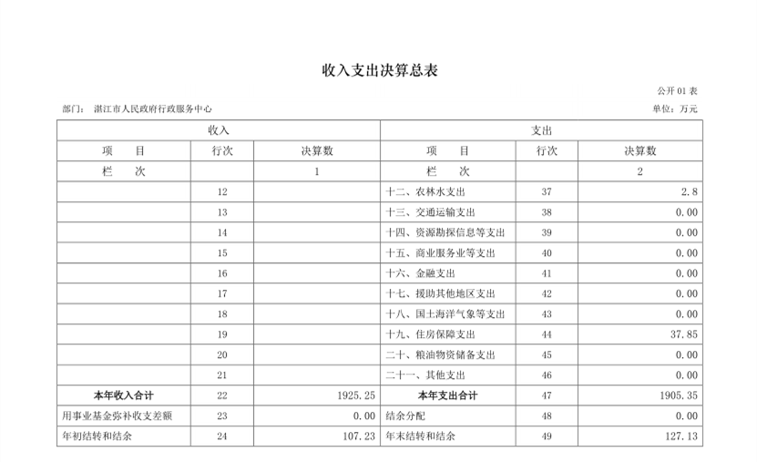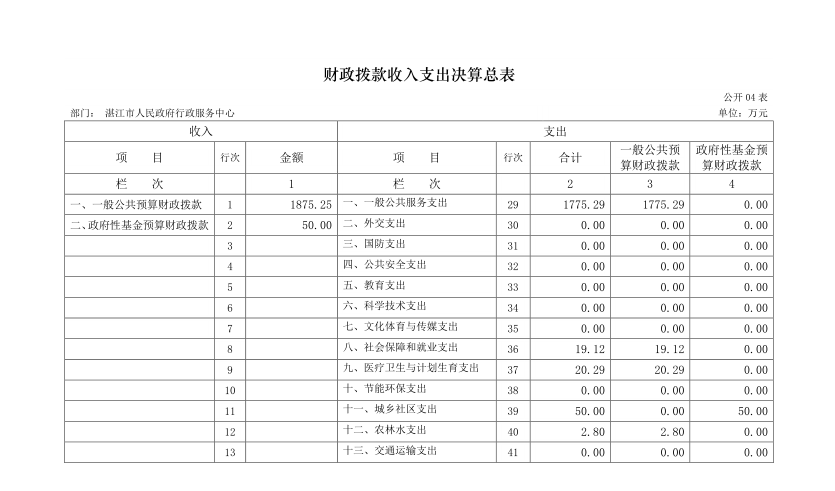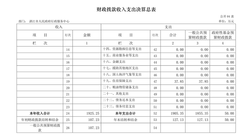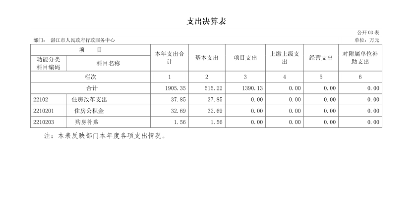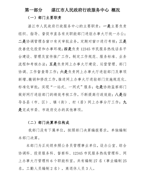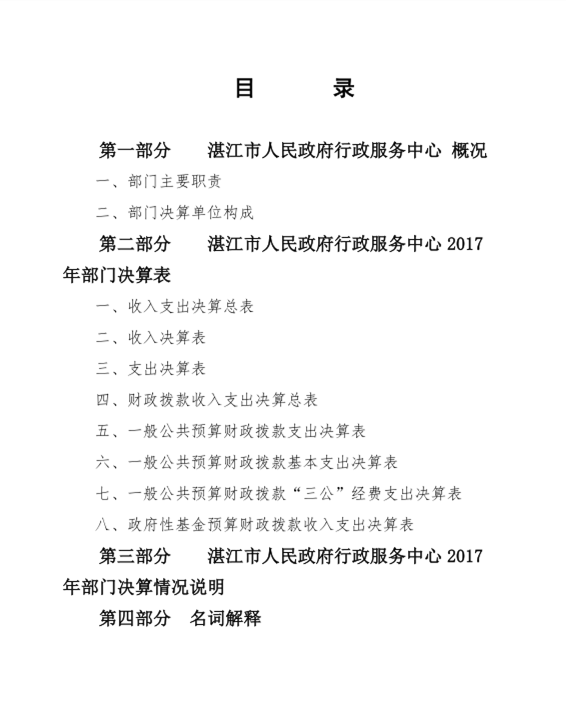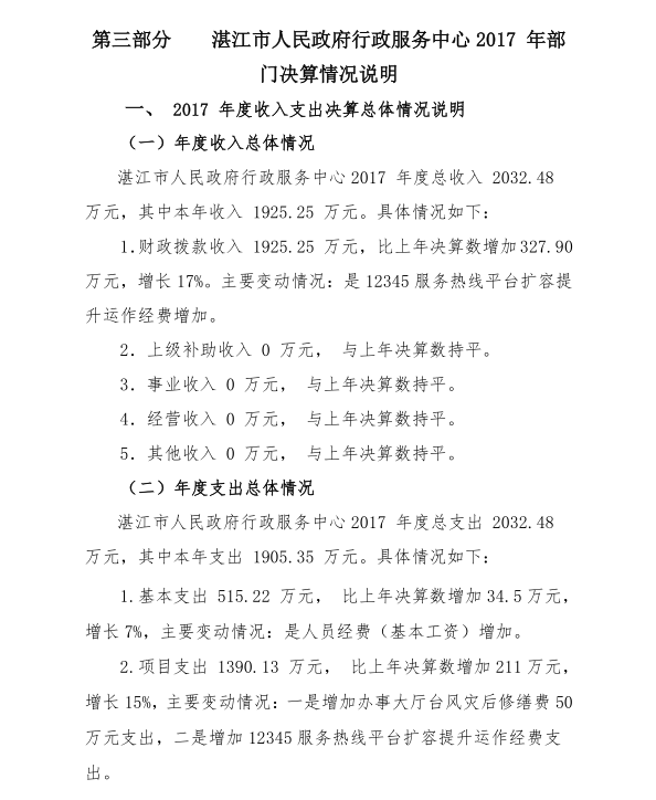 湛江市人民政府行政服務(wù)中心2017 年部門決算公開