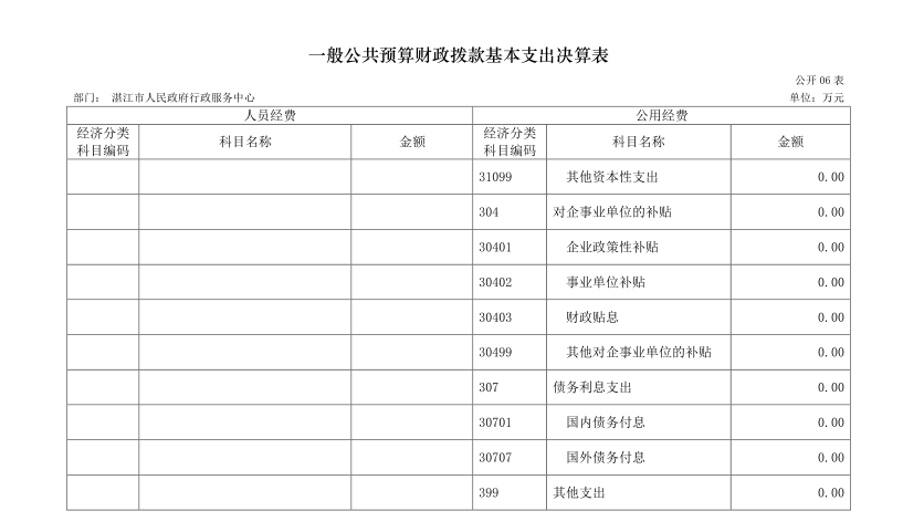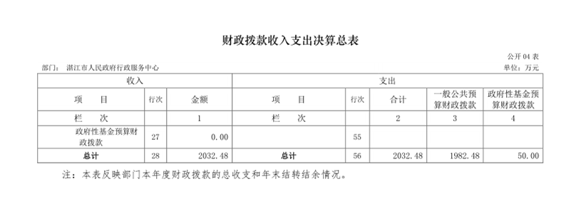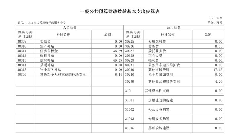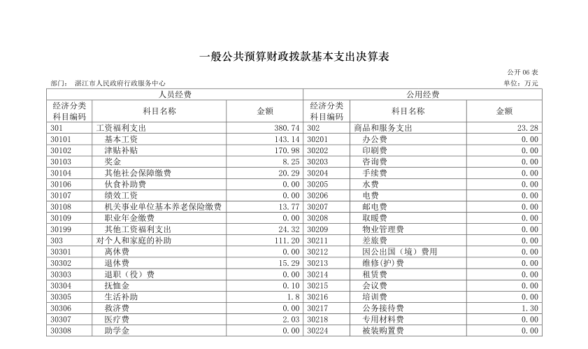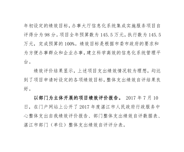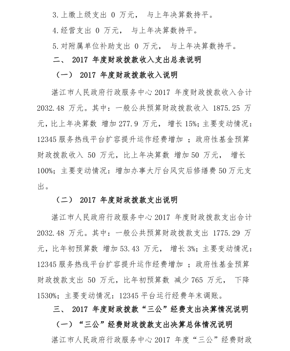 湛江市人民政府行政服務(wù)中心2017 年部門決算公開