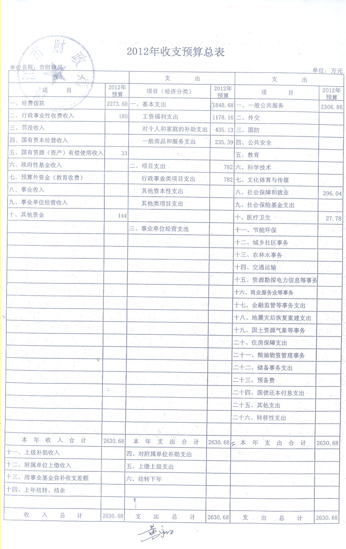 2011年度收入支出決算和2012年收入支出預(yù)算情況