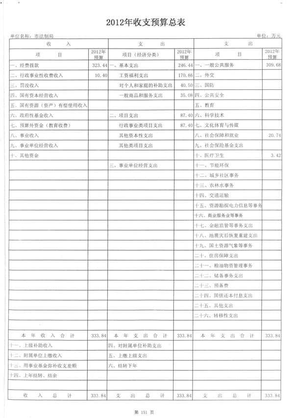 市法制局2012財政預(yù)算收支總表