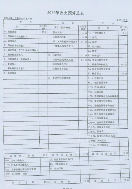 2012市果菜辦預(yù)算