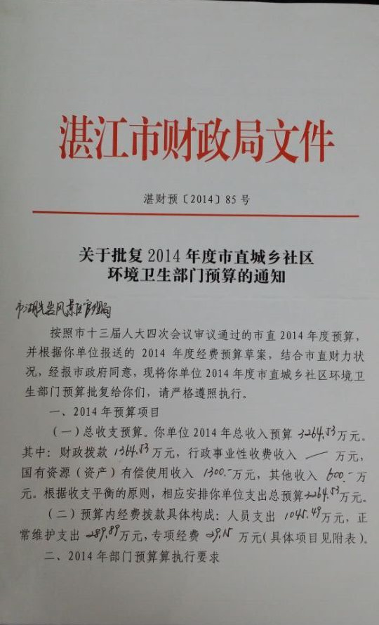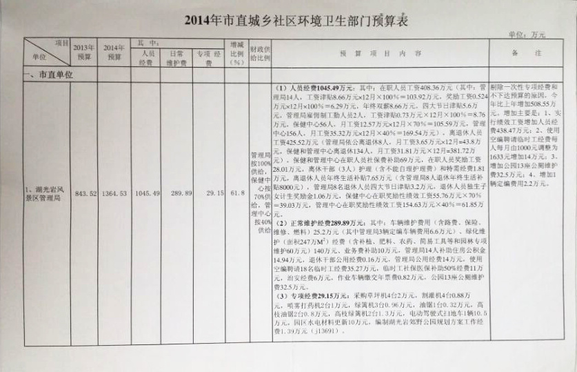湖光巖風(fēng)區(qū)景管理局2014年預(yù)算表