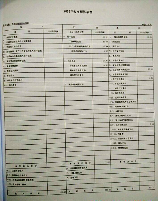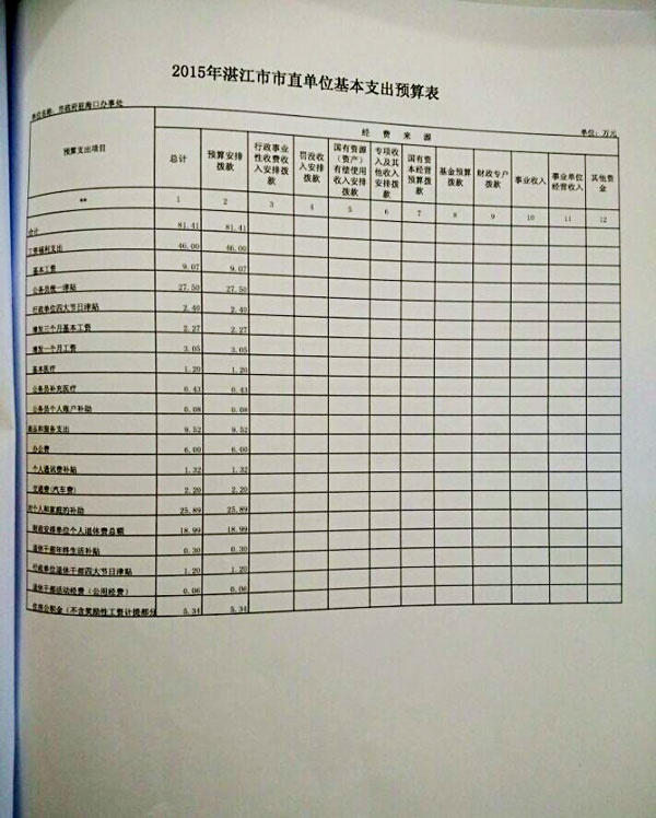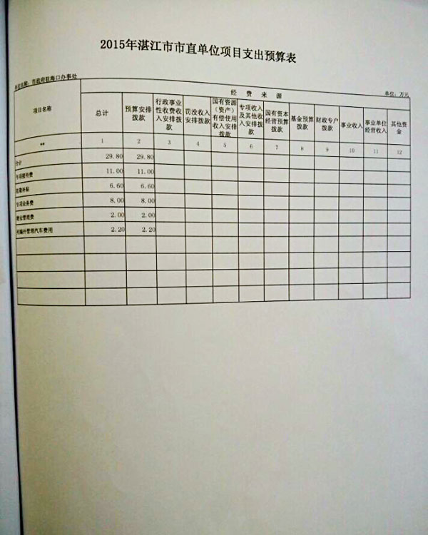 湛江市人民政府駐??谵k事處2015年預(yù)算