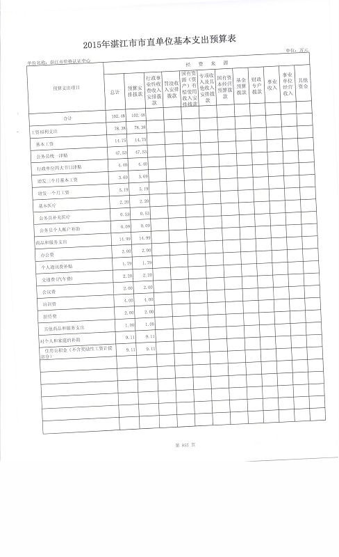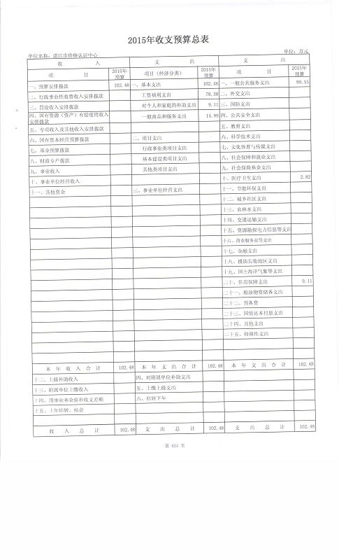 湛江市價(jià)格認(rèn)證中心2015年經(jīng)費(fèi)預(yù)算