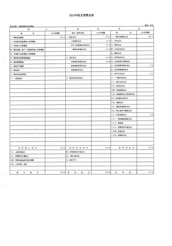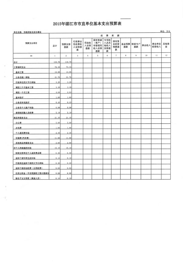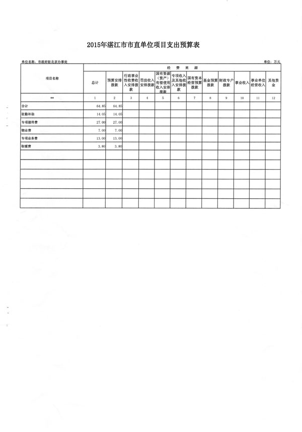 湛江市人民政府駐北京辦事處2015年預(yù)算