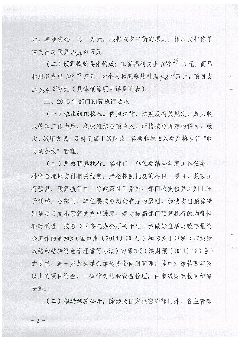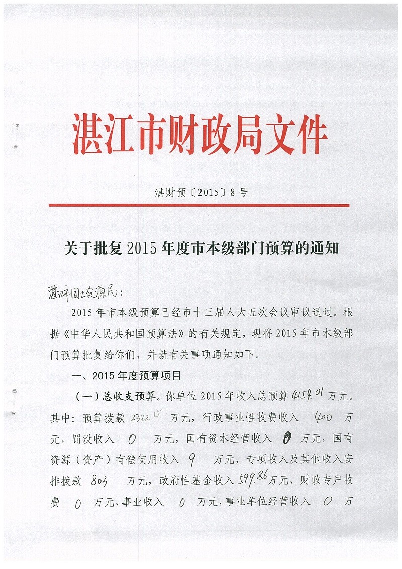 關(guān)于批復(fù)2015年度本級部門預(yù)算的通知
