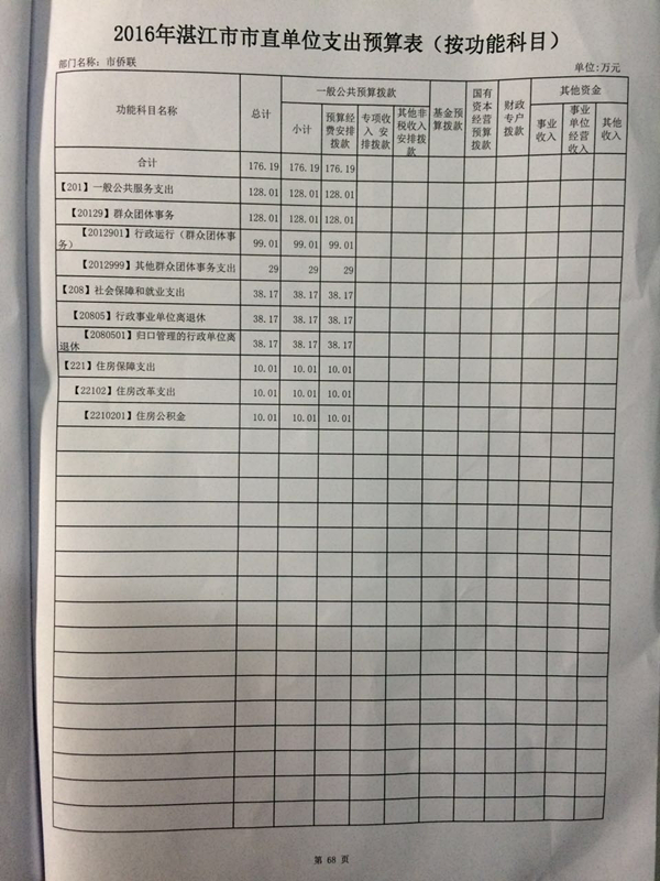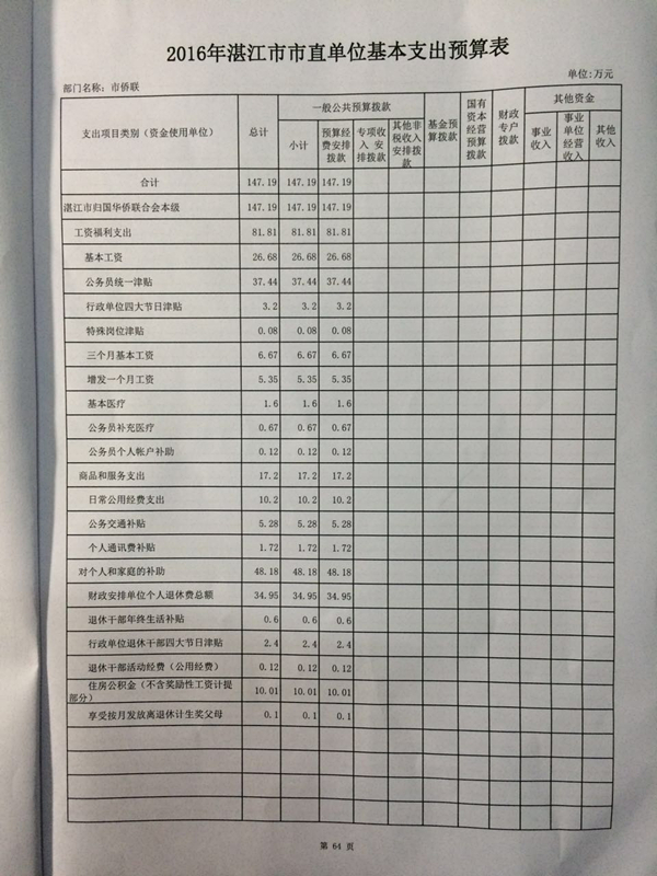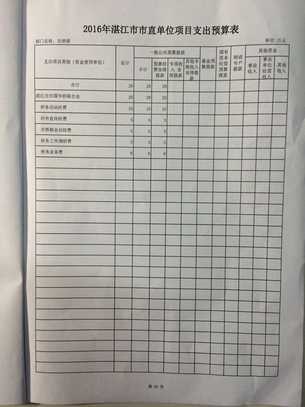 湛江市歸國華僑聯(lián)合會2016年度預(yù)算