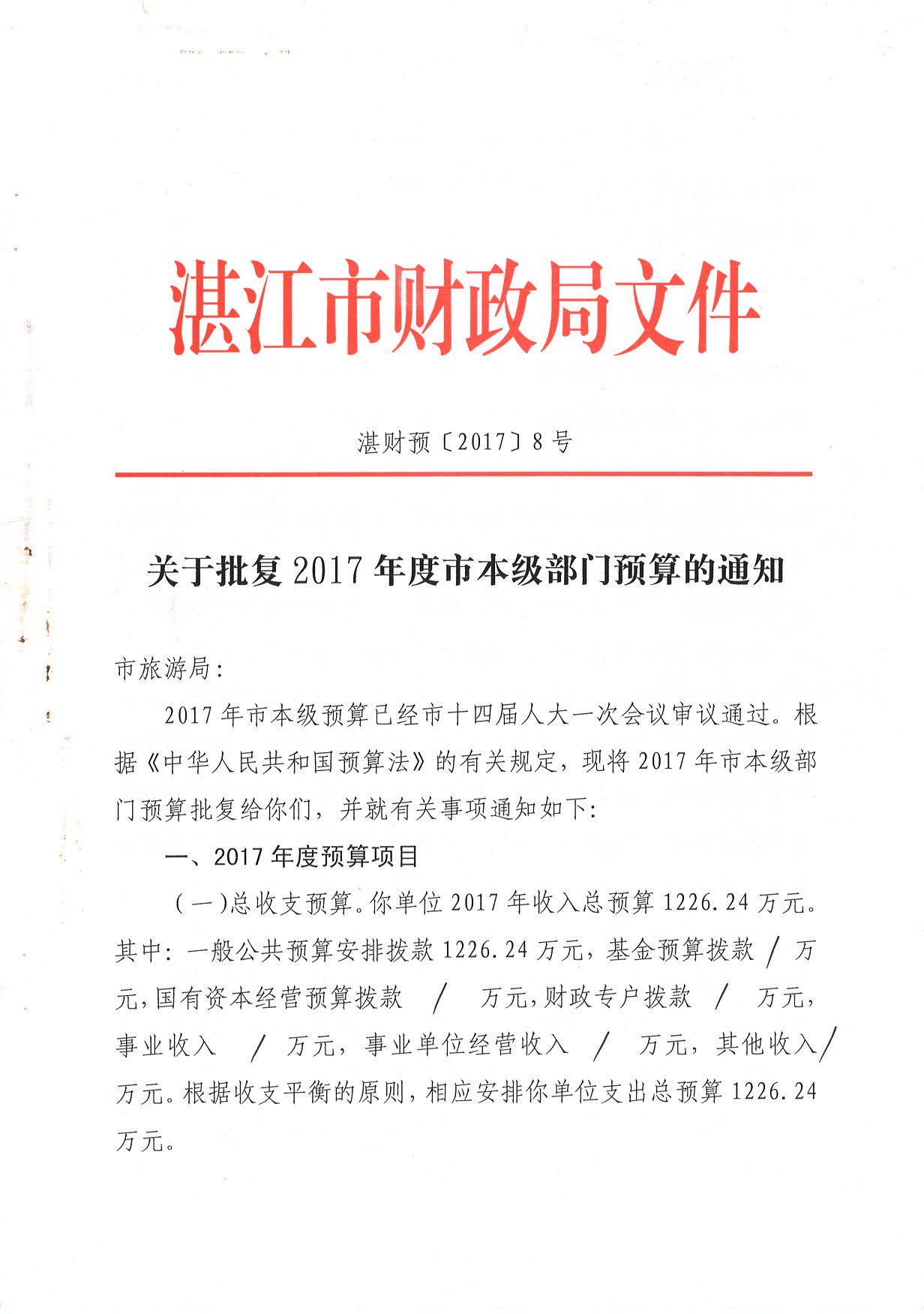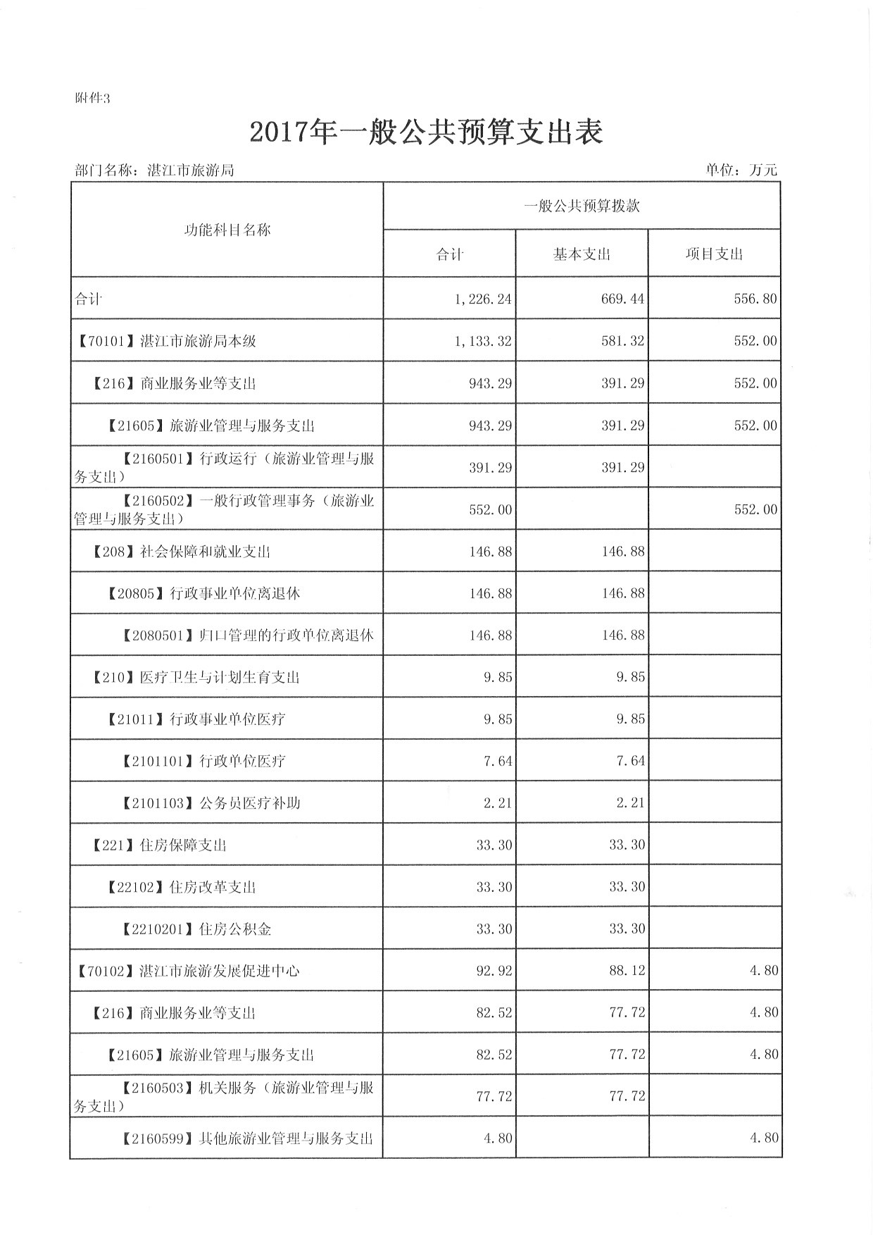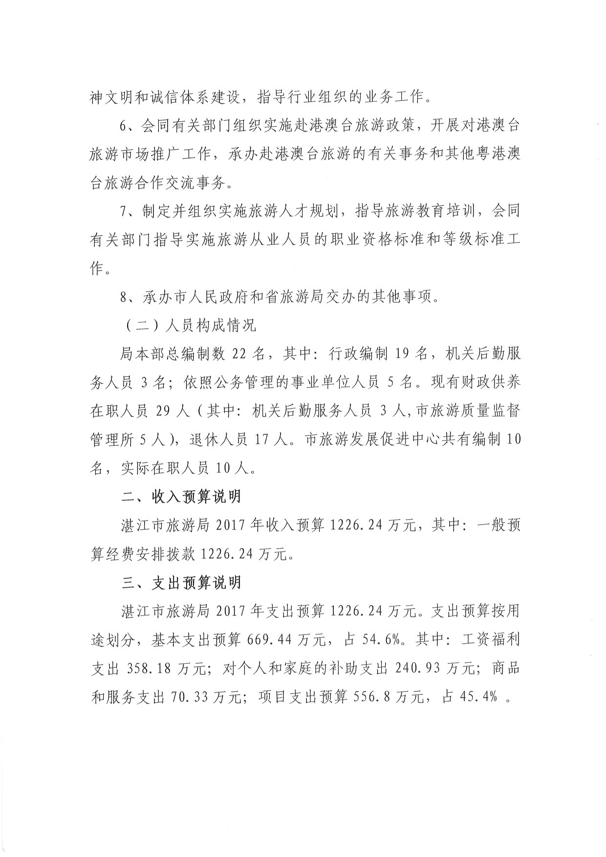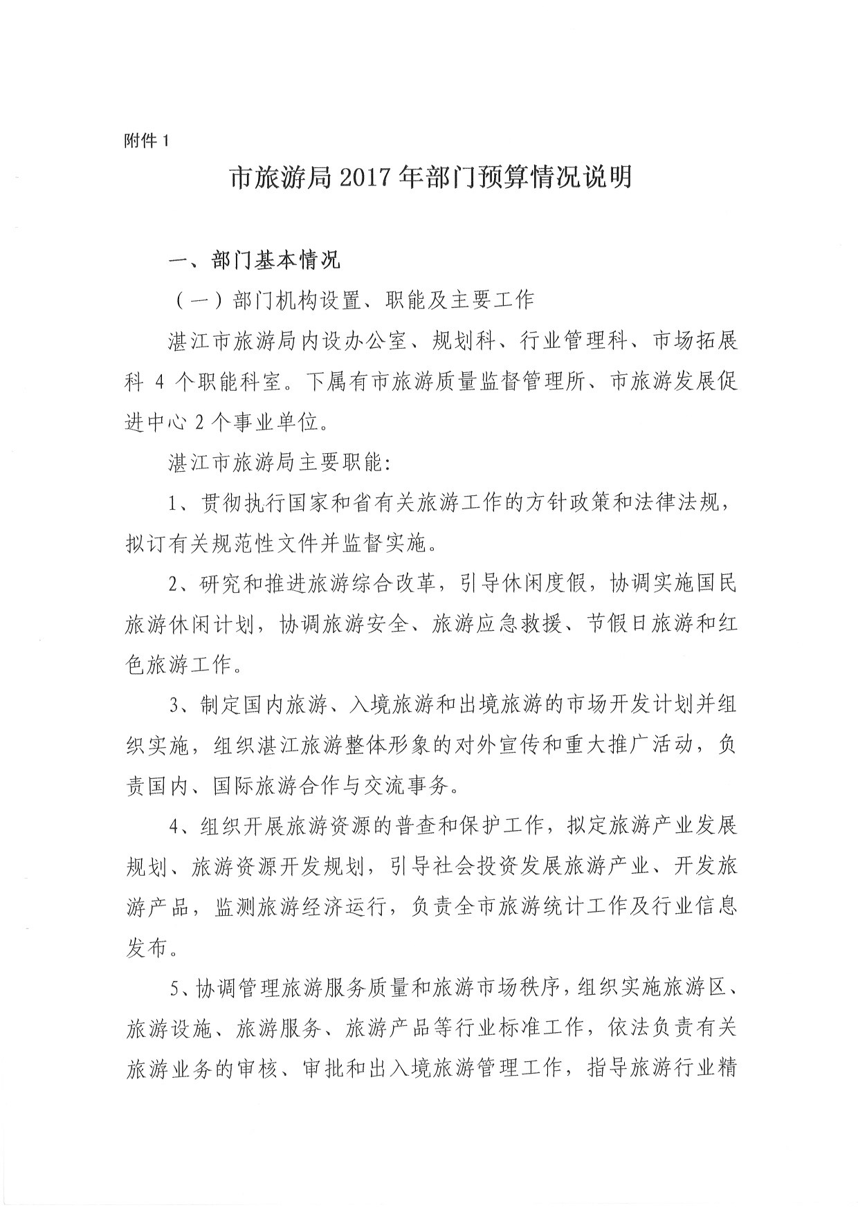 湛江市旅游局2017年部部門預算情況說明