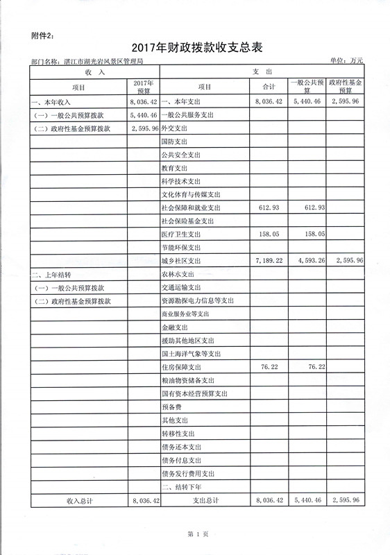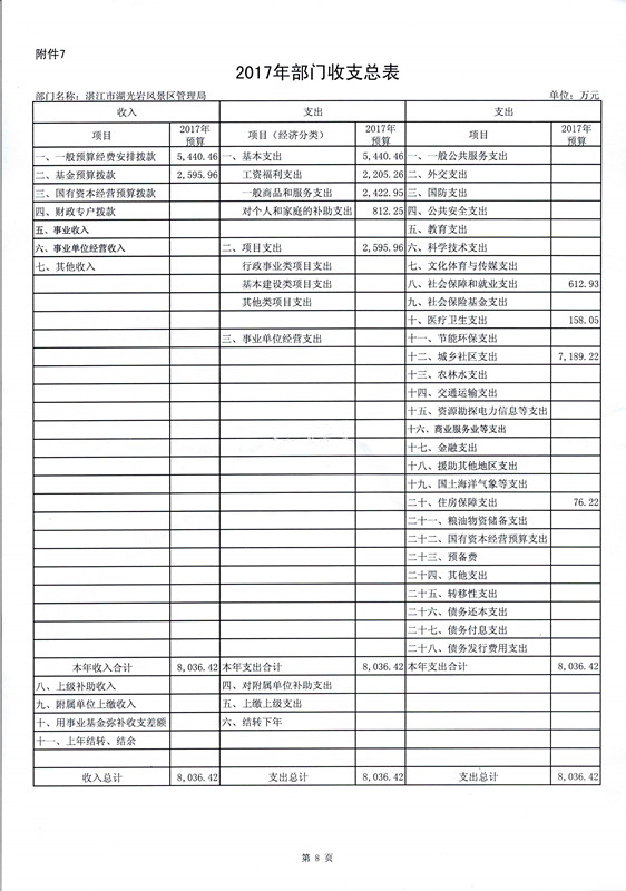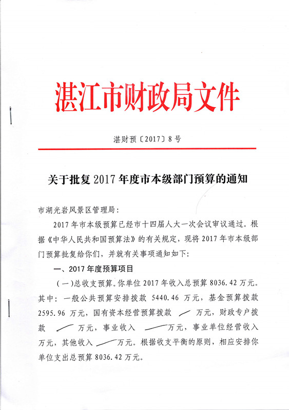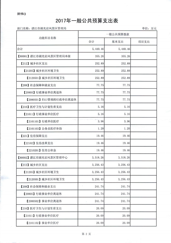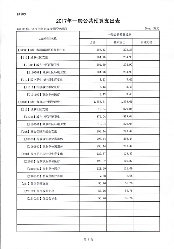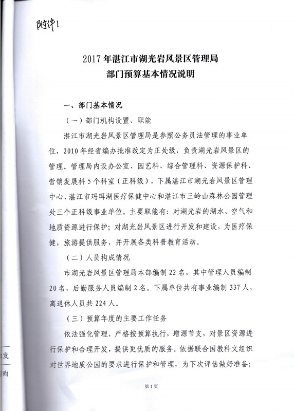 2017年湛江市湖光巖風(fēng)景區(qū)管理局部門預(yù)算基本情況說明