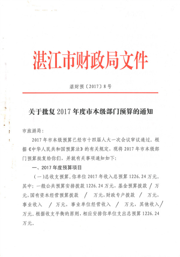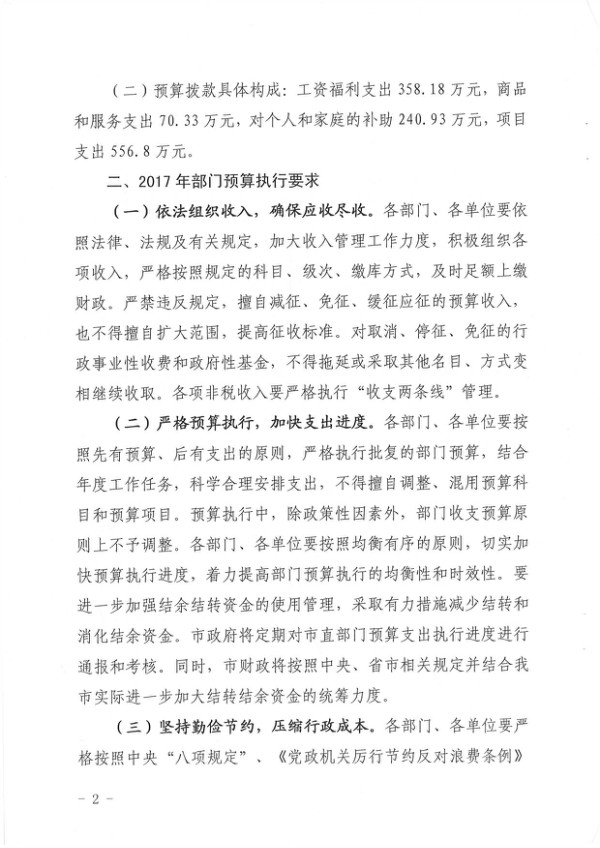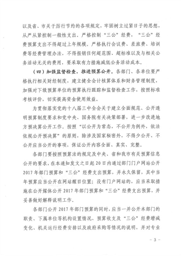 關于批復2017年度市本級部門預算的通知