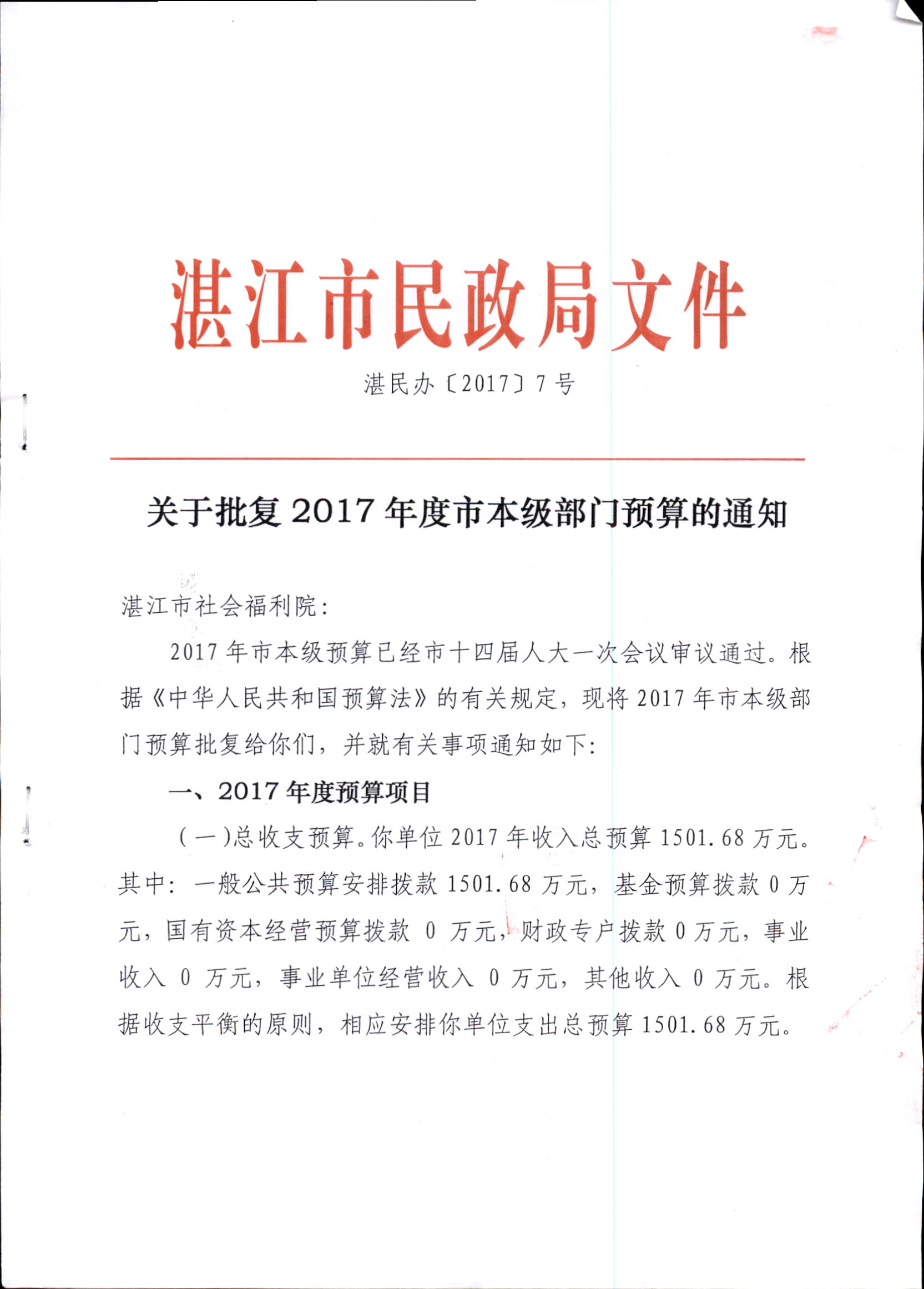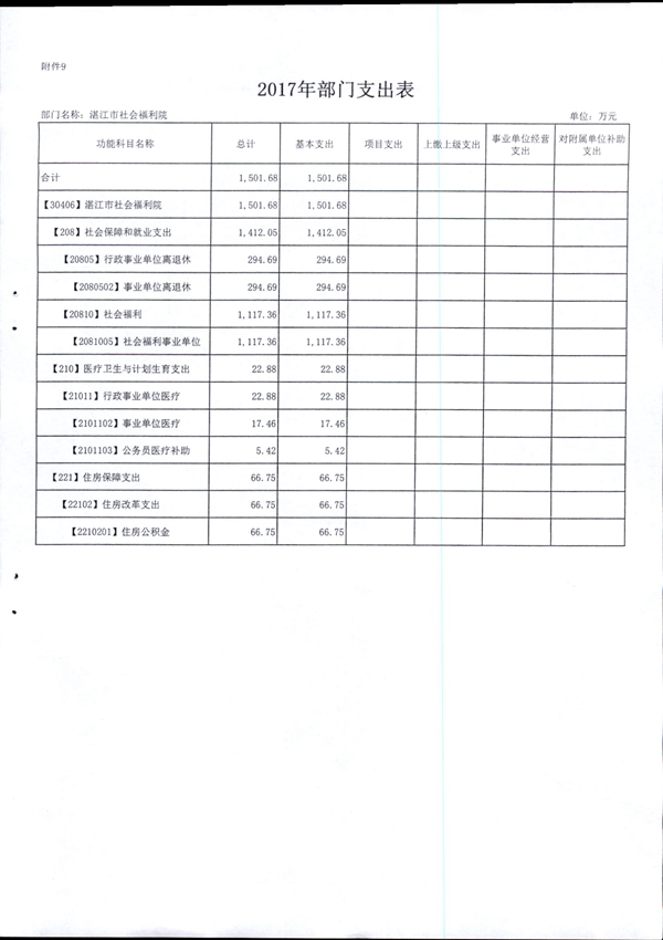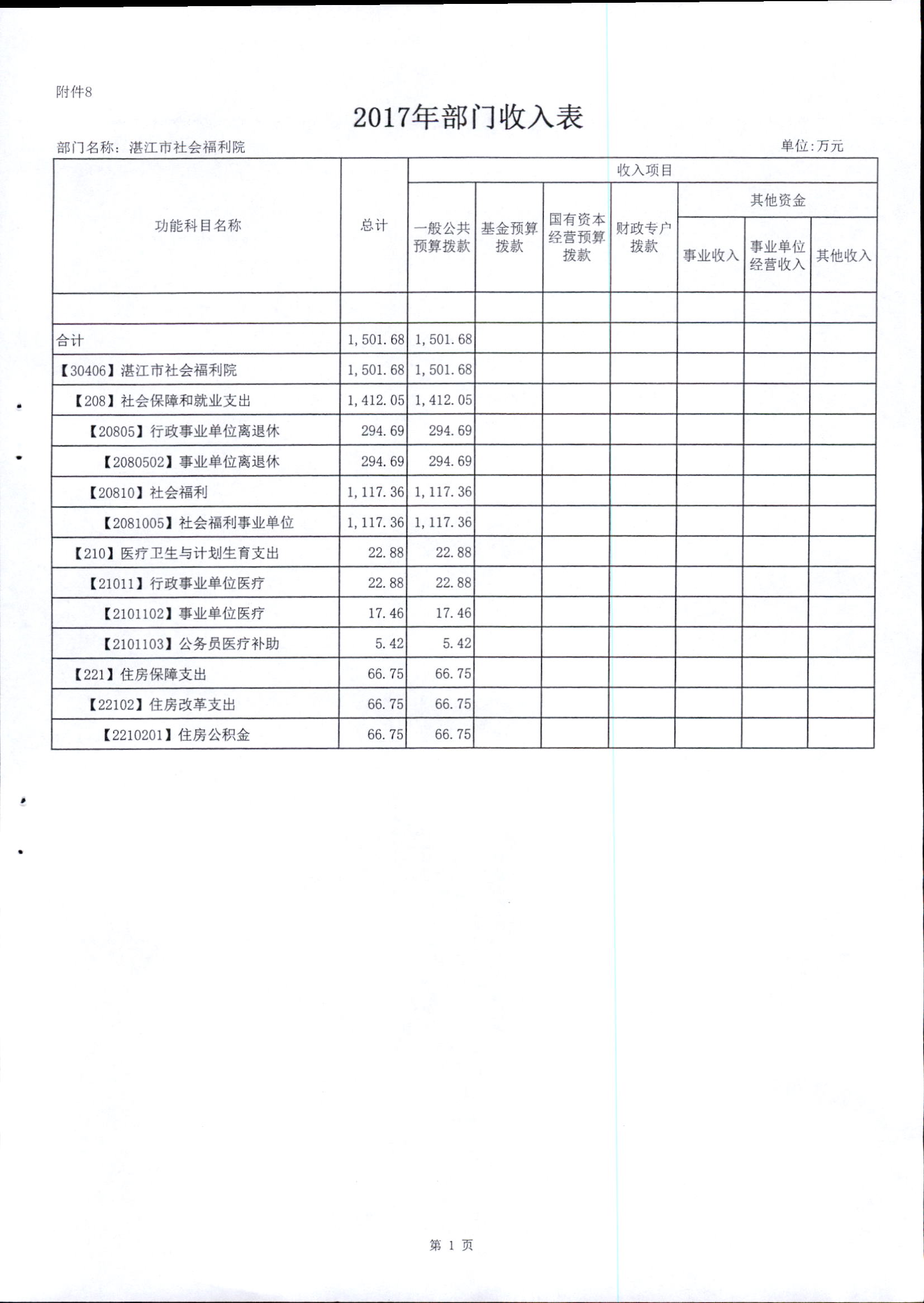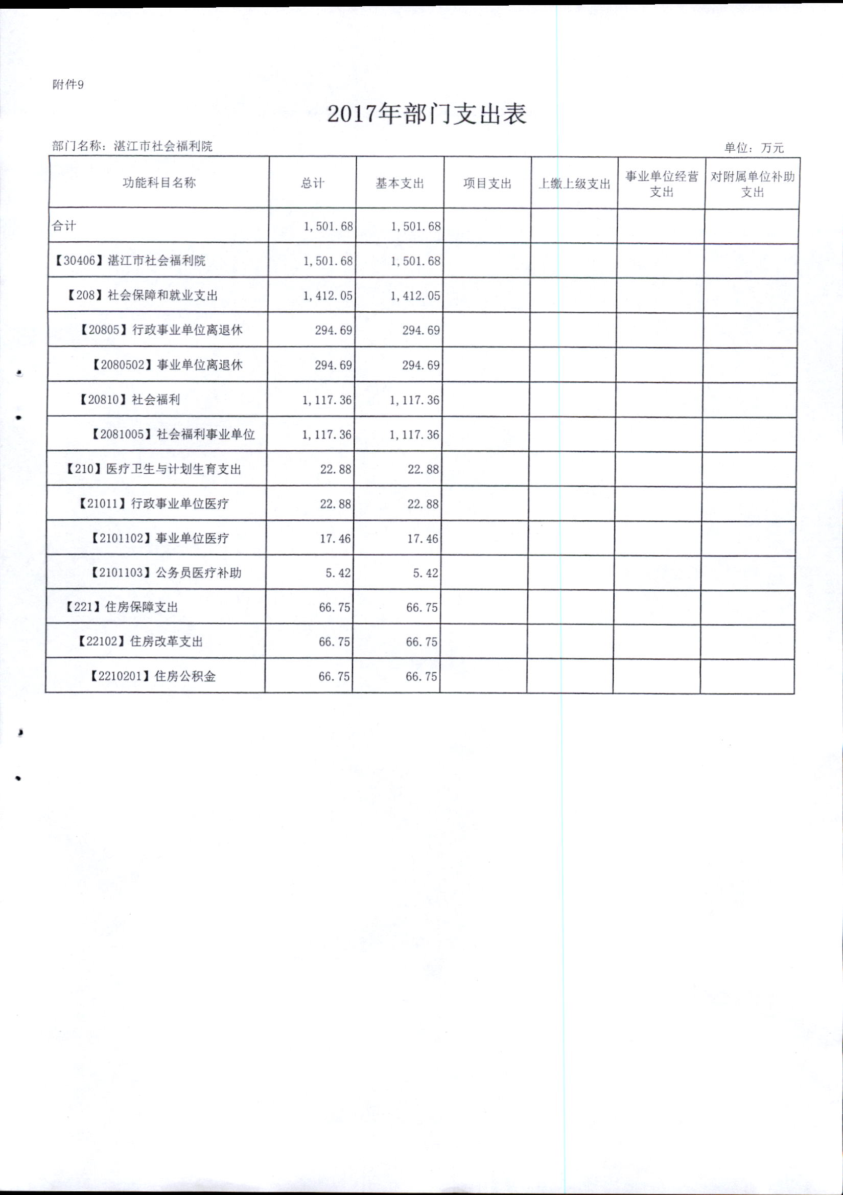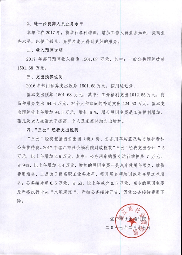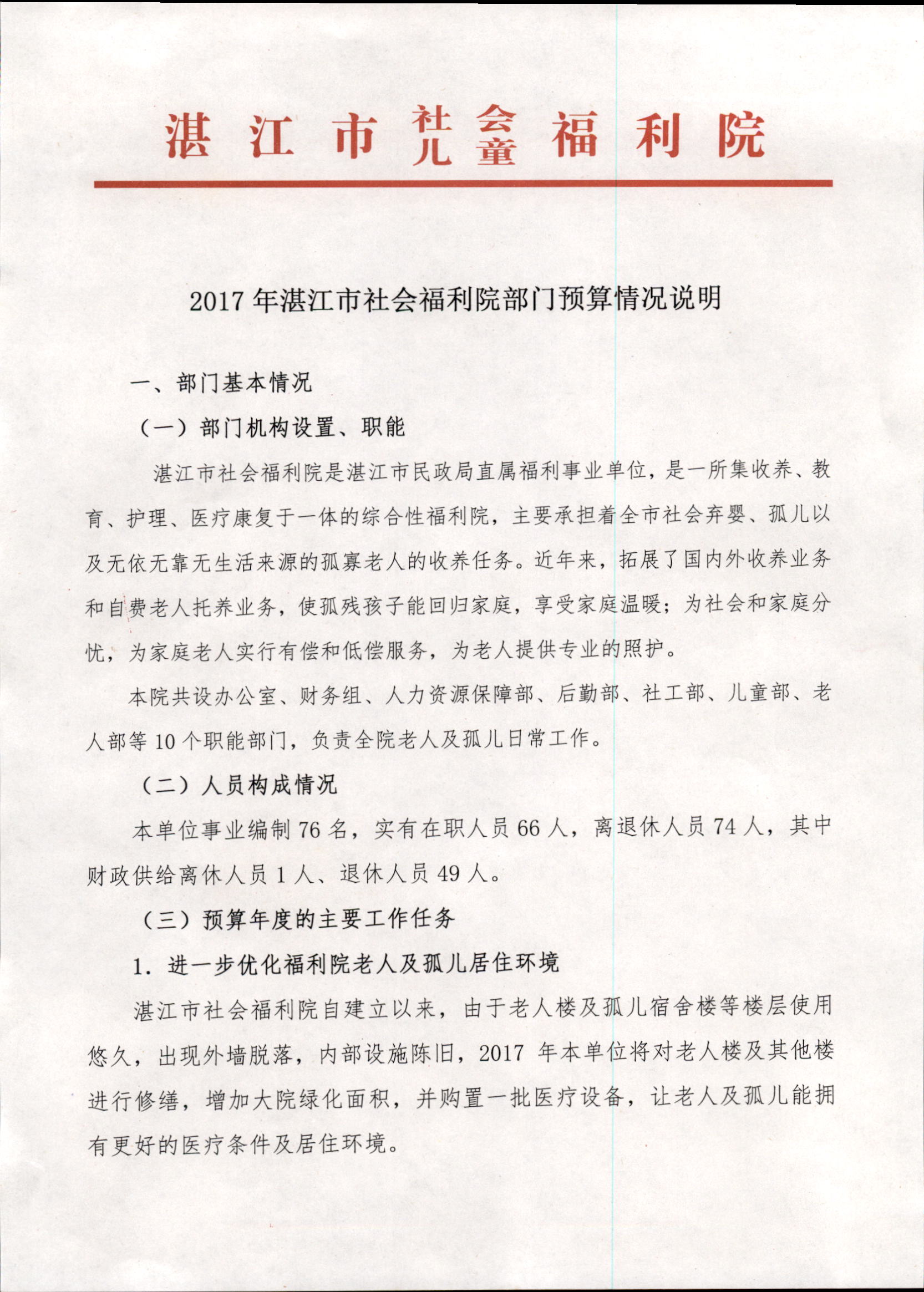 2017年湛江市社會福利院部門預(yù)算情況說明