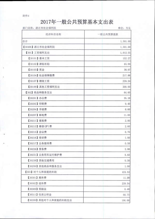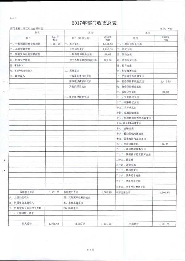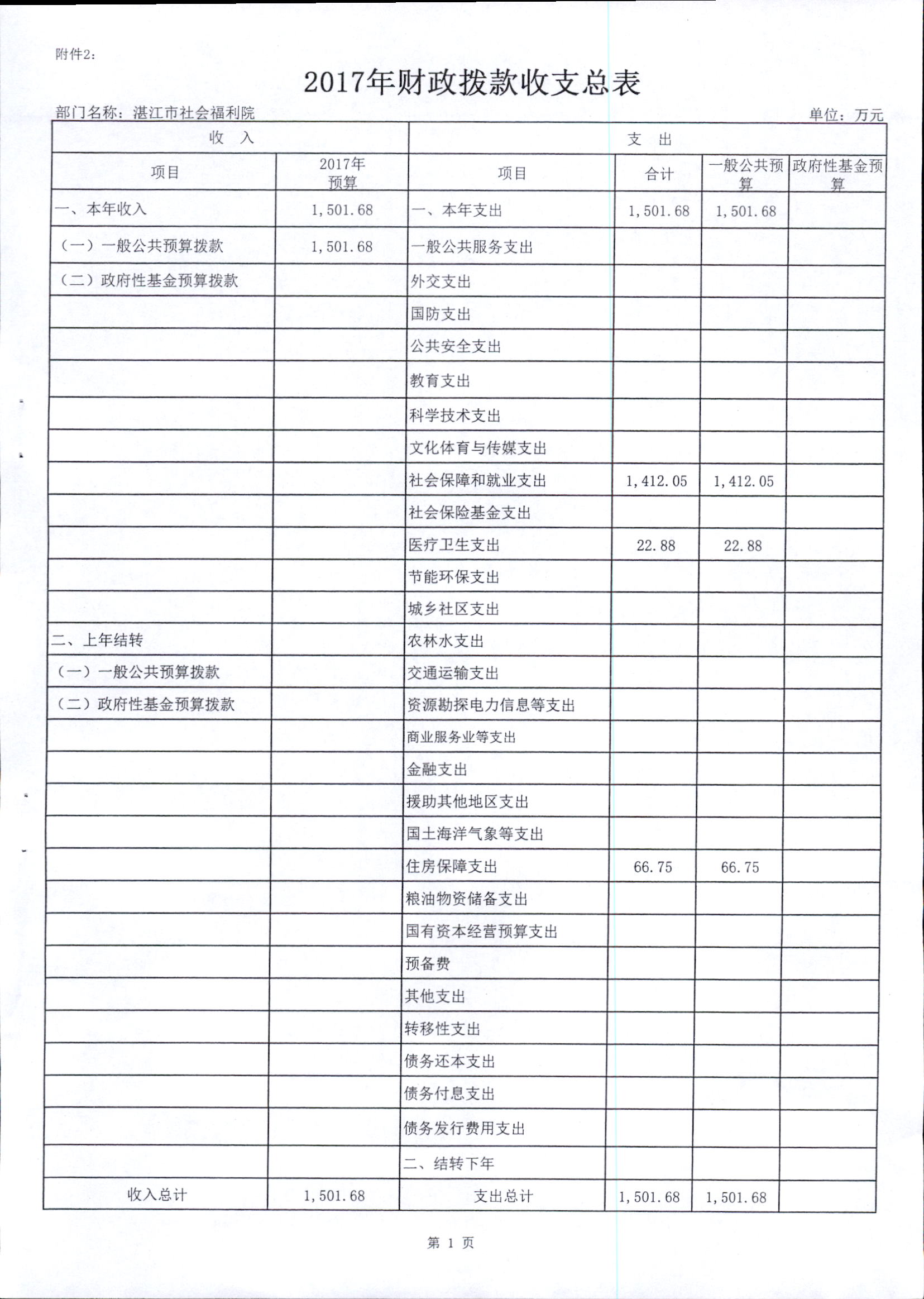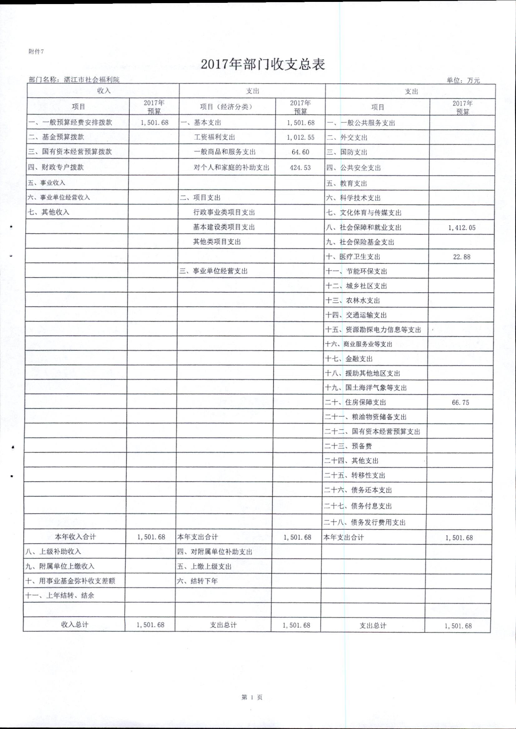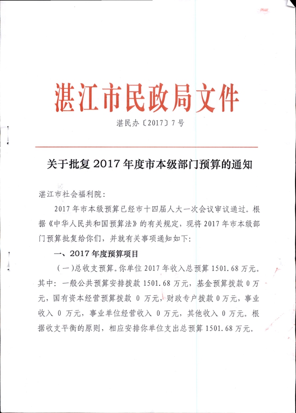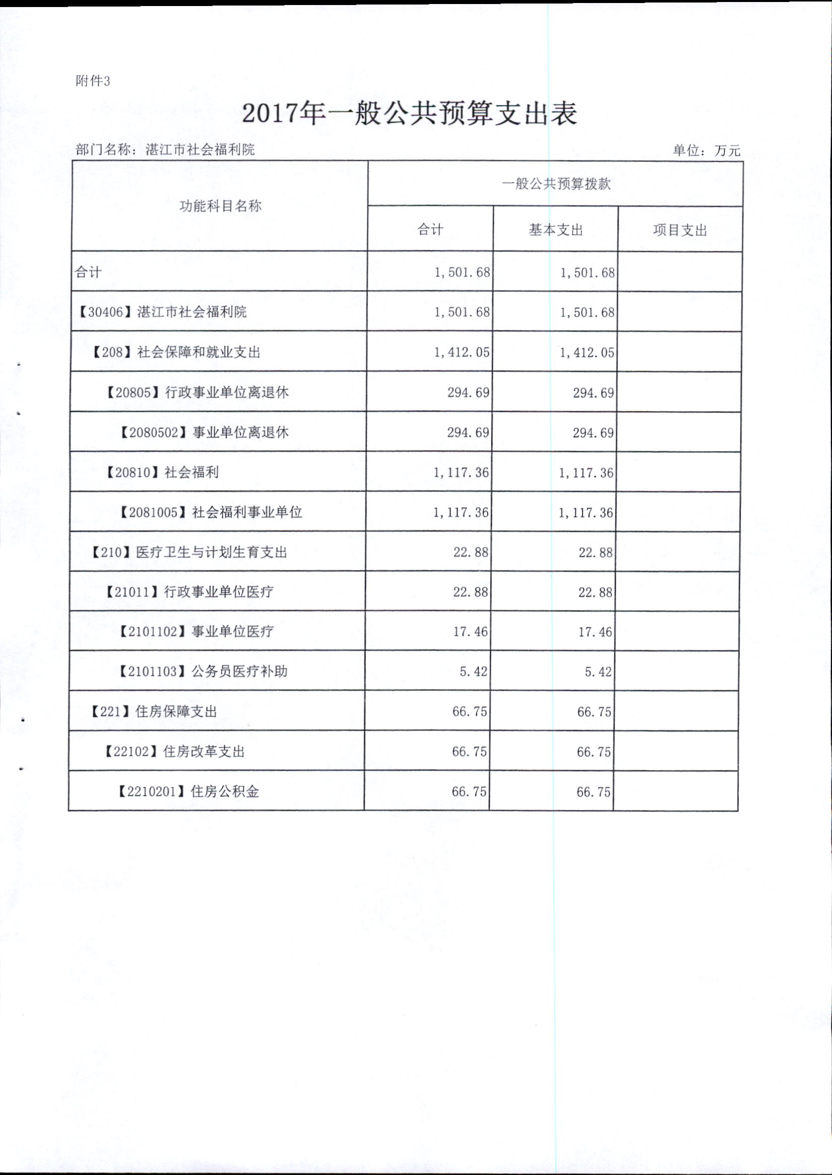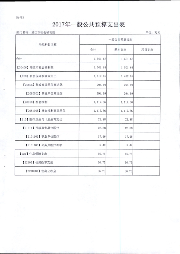 2017年湛江市社會福利院部門預(yù)算情況說明