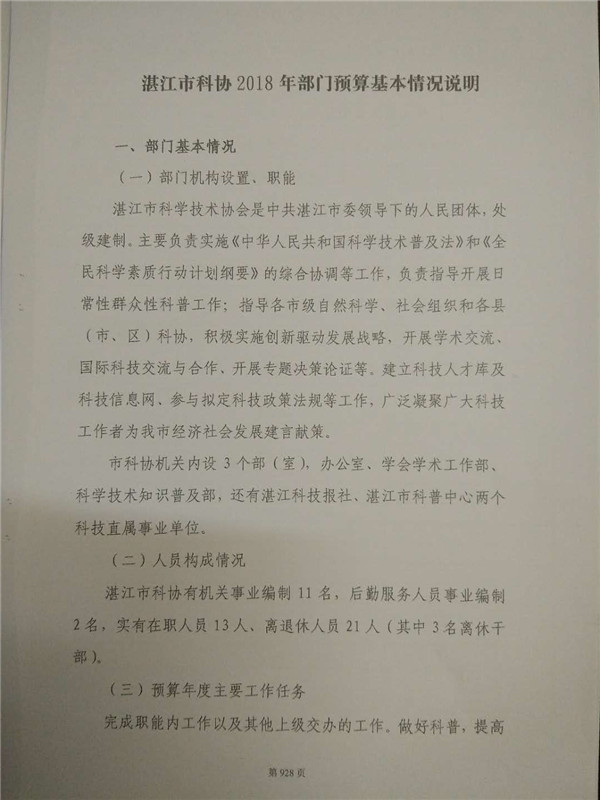 第一部分2018 年湛江市科協(xié)部門(mén)預(yù)算基本情況說(shuō)明