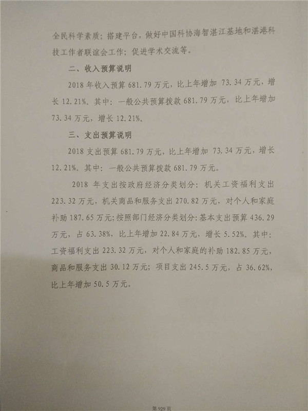 第一部分2018年湛江市科協(xié)部門(mén)預(yù)算基本情況說(shuō)明