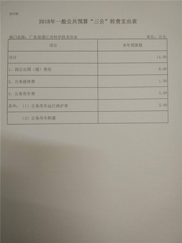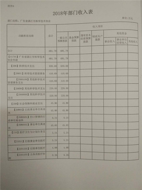 附件:2018年廣東省湛江市科學(xué)技術(shù)協(xié)會(huì)部門(mén)預(yù)算