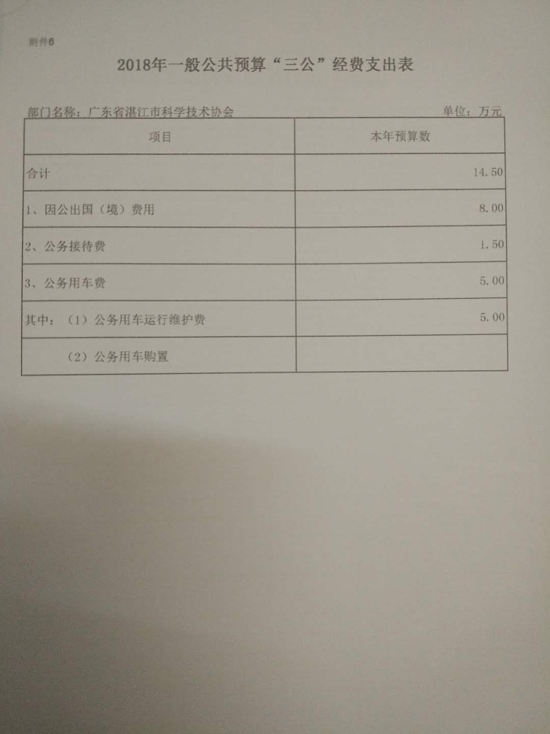 2018年湛江市科協(xié)三公經(jīng)費(fèi)公開
