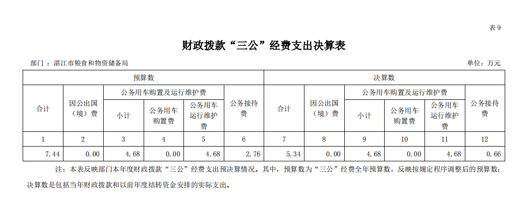 2022年湛江市糧食和物資儲備局三公經(jīng)費決算