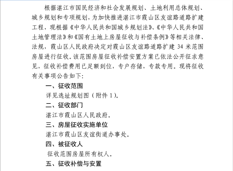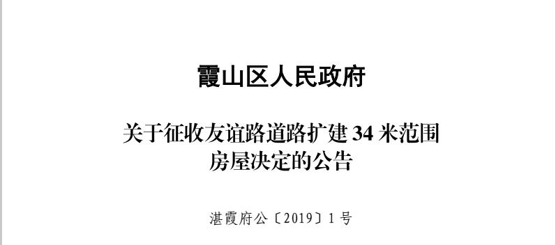 霞山區(qū)人民政府關(guān)于征收友誼路道路擴(kuò)建34米范圍房屋決定的公告