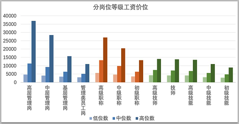 從崗位來看,管理、技術(shù)、技能等級越高,職工工資水平越高。管理崗位中,高層管理崗、中層管理崗、基層管理崗、管理類員工崗的中位數(shù)分別為11293元/月、9167元/月、6280元/月、5027元/月;專業(yè)技術(shù)崗位中,高級職稱、中級職稱、初級職稱的中位數(shù)分別為13294元/月、9838元/月、6314元/月;職業(yè)技能崗位中,高級技師、技師、高級技能、中級技能、初級技能的中位數(shù)分別為7379元/月、7107元/月、6711元/月、5622元/月、4703元/月。