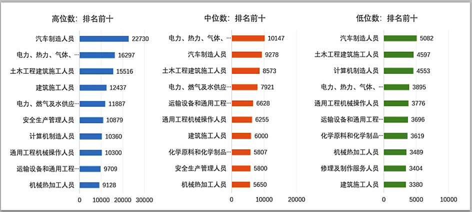 從技能人才細(xì)分職業(yè)來看,今年首次發(fā)布技能人才分職業(yè)工資價位水平顯示,在技能人才中排名較高的職業(yè)主要是汽車制造、計算機制造、能源供應(yīng)、安全管理、建筑施工、機械制造、化工制造等。技能人才工資價位顯示了廣東省先進制造業(yè)、戰(zhàn)略新興產(chǎn)業(yè)的蓬勃發(fā)展,對技能人才的需求進一步加大。
