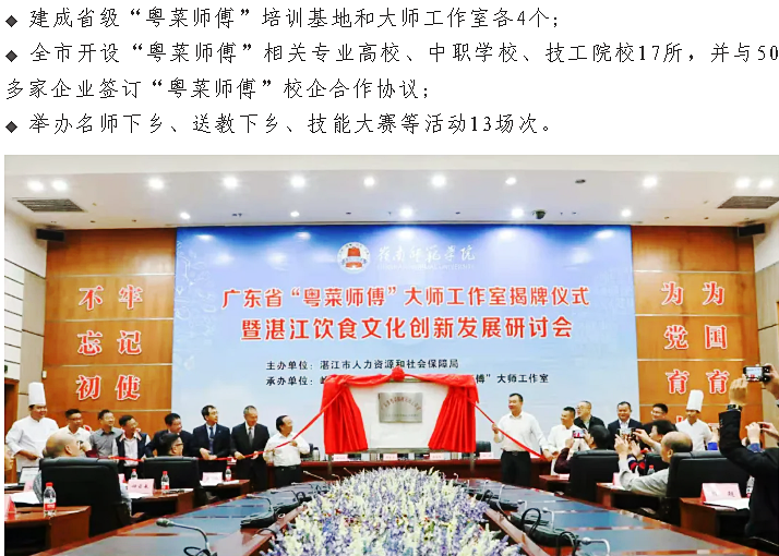 “粵菜師傅”整合特色農(nóng)產(chǎn)品、鄉(xiāng)村旅游等資源,打造富有湛江本地特色“粵菜師傅”“1+N”品牌,在助力鄉(xiāng)村振興、貧困人口和貧困村歸零以及鄉(xiāng)村第三產(chǎn)業(yè)發(fā)展方面發(fā)揮了重要作用。“廣東技工”對接鋼鐵、石化、造紙等重大項目,今年來為重點項目輸送本土技能人才1166人,為湛江制造業(yè)高質(zhì)量發(fā)展提供人才支撐。“南粵家政”解決了重大項目建設(shè)大軍到湛江的后顧之憂,為城市建設(shè)者展現(xiàn)了湛江城市宜居環(huán)境,彰顯了湛江城市情懷與溫度。