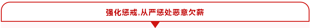 全面強化欠薪違法懲戒,建立人社、行業(yè)主管部門、公安、城綜、發(fā)改、法院、檢察院聯(lián)合懲戒機制,用好用足行政、刑事、信用等懲戒手段,加強行政執(zhí)法和刑事司法銜接。
