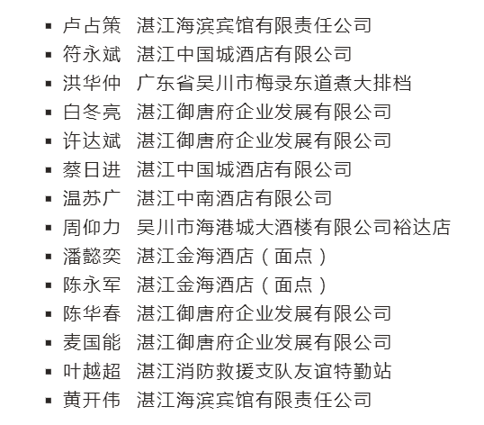 湛江市2021年廣東省一、二、三星級“粵菜師傅”認(rèn)定結(jié)果出爐