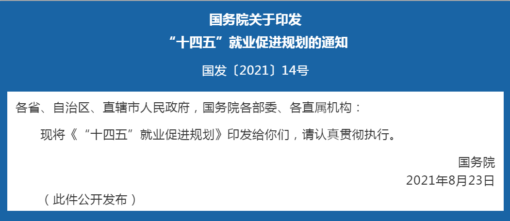 國務(wù)院印發(fā)《“十四五”就業(yè)促進(jìn)規(guī)劃》