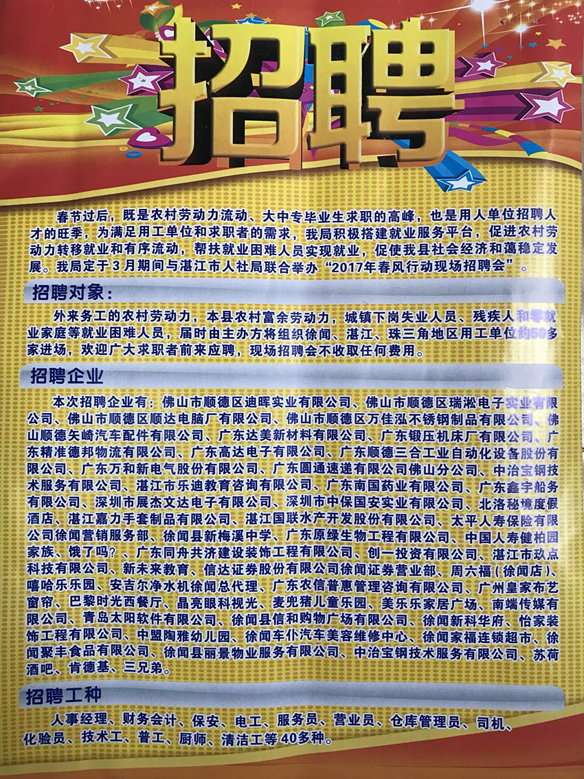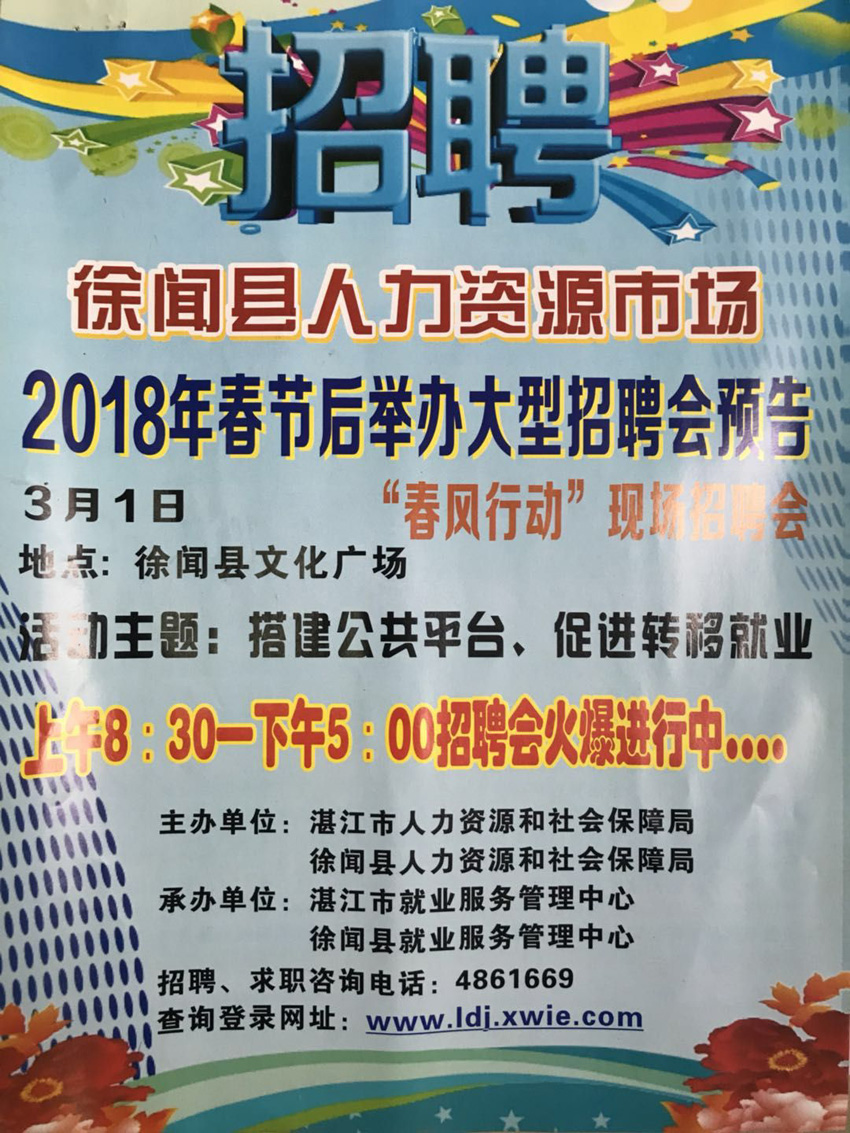 徐聞縣人力資源市場(chǎng)2018年春節(jié)后舉辦大型招聘會(huì)預(yù)告