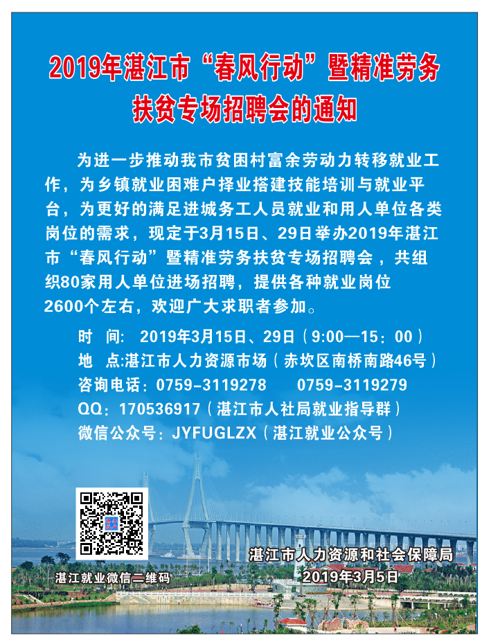 2019年湛江市“春風行動”暨精準勞務(wù)扶貧專場招聘會的通知