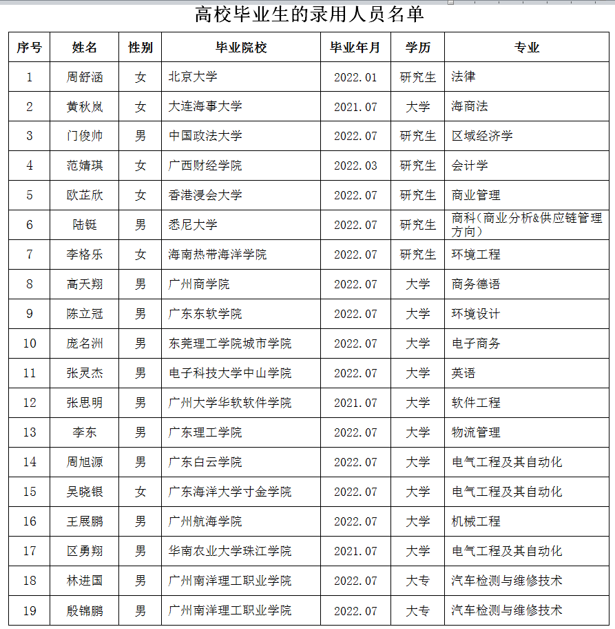2022年湛江港(集團(tuán))股份有限公司招聘高校畢業(yè)生的錄用人員名單公示