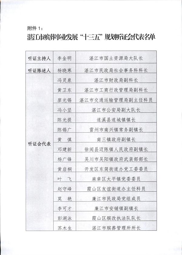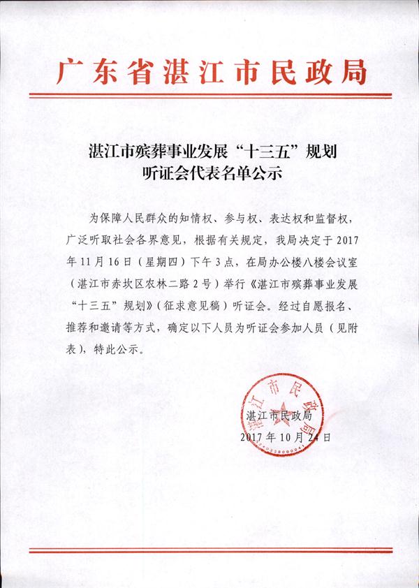 湛江市殯葬事業(yè)發(fā)展“十三五”規(guī)劃聽證會代表名單公示