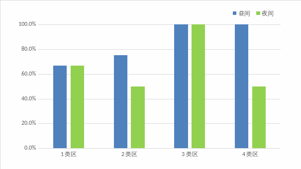 2020年第四季度全市15個功能區(qū)聲環(huán)境監(jiān)測達標率分別為:1類區(qū)晝間為66.7%,夜間為66.7%;2類區(qū)晝間為75.0%,夜間為50.0%;3類區(qū)晝間為100%,夜間為100%;4類區(qū)晝間為100%,夜間為50.0%。