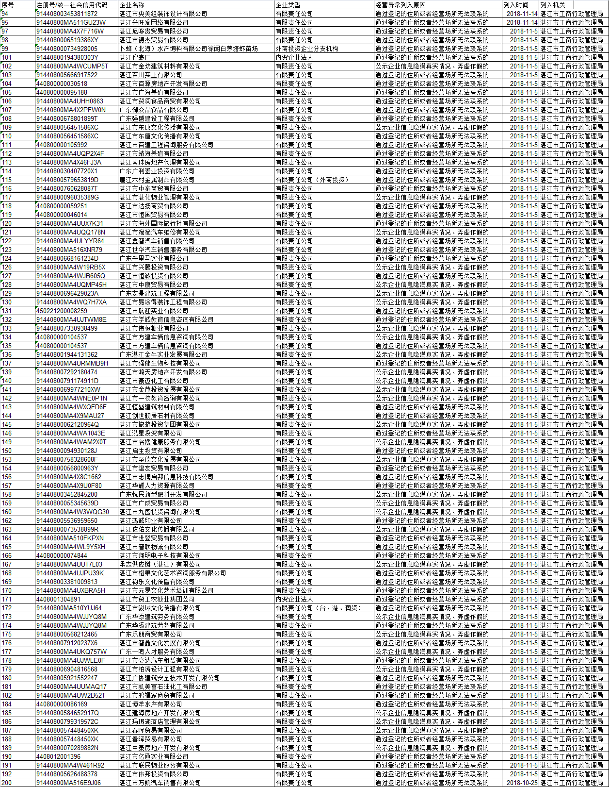 湛江市工商局2018年10月1日-11月30日列入經(jīng)營異常名錄的企業(yè)
