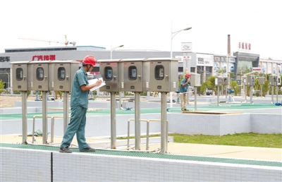 5月16日,在赤坎水質(zhì)凈化廠三期工程廠區(qū),工作人員正在儀器前核錄數(shù)據(jù)。?記者 林石湛 吳智恒 攝