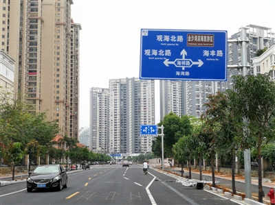 目前,道路工程和排水工程部分已全部完工,已完成整個項目進度的95﹪,剩下的園林綠化、照明路燈、交通標線等收尾工作正在日以繼夜地推進施工中,爭取盡快完工,緩解金沙灣片區(qū)的交通壓力。施工單位相關(guān)負責(zé)人表示,海灣路地下排水管網(wǎng)復(fù)雜,所埋深度較深,改造難度大,導(dǎo)致整條道路施工困難重重,施工方案反復(fù)斟酌修改。同時,為了確保早日按時按質(zhì)完成工程,從路基到路面,每道工序都經(jīng)過嚴格的質(zhì)量把過關(guān),精益求精,終于順利完成工程建設(shè)。該負責(zé)人說,海灣路新建工程踐行了“三大城市”理念,路面排水的雨水井、綠道、人行道等配套設(shè)施都突顯以人為本,如海灣路沿線新栽種的芒果樹,在瓜果飄香季節(jié)會分外美麗誘人。海灣路全線僅1公里左右,但有5個路口,算起來每個路口的平均距離約250米,在設(shè)置交通標線上,每個路口右拐方向交通標線較寬,不受燈控。工程全部完工后,路面平整度高、噪音少、更美觀。