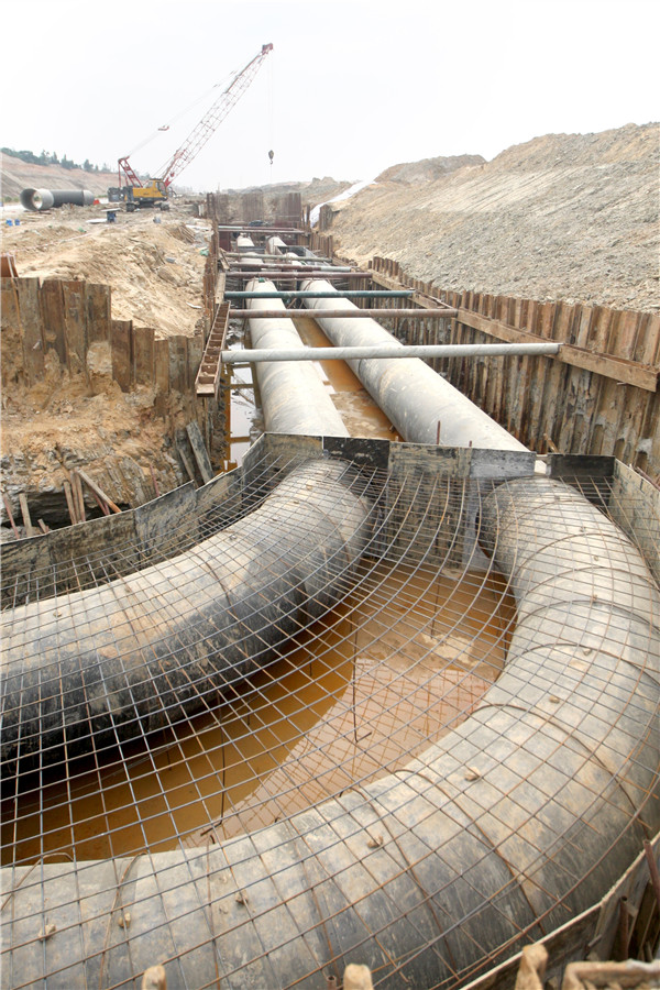 東海島鐵路湛江鋼鐵工廠站項目管道施工現(xiàn)場。記者 劉冀城 攝