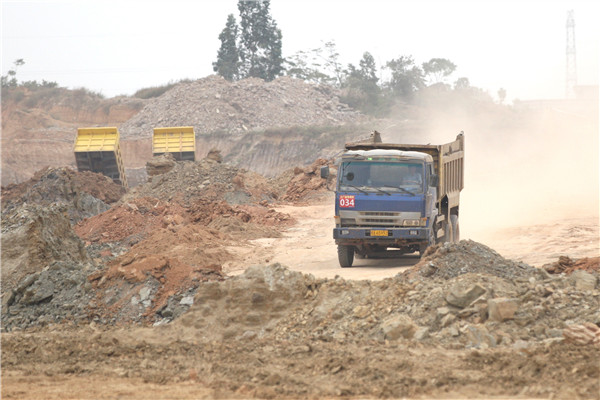 12月16日上午,記者在項目施工現(xiàn)場看到,雖然天氣轉(zhuǎn)涼,然而工地上是一派熱火朝天的景象。一輛輛工程車來回忙碌,數(shù)十輛大型挖掘機(jī)揮臂深耕,一塊塊小山坡逐漸變成平地……
