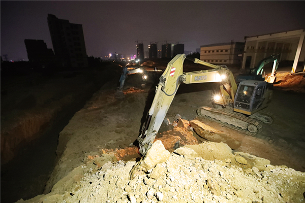 記者在施工現(xiàn)場(chǎng)看到,近百輛機(jī)械和工人正在忙碌趕工,東菊北路口段240米排水渠道已完成墊層澆搗,正在進(jìn)行渠道鋼筋綁扎工作;中心醫(yī)院新址門口段已完成石渣換填,正在實(shí)施排水管道開挖工作,預(yù)計(jì)本月中旬完成,下階段將鋪設(shè)道路穩(wěn)定層及瀝青路面。為了減少對(duì)周邊居民的影響,項(xiàng)目實(shí)行全線封閉施工,并持續(xù)灑水降塵。