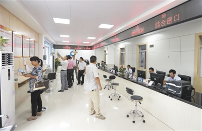 4日,湖光鎮(zhèn)公共服務中心辦事大廳,辦好業(yè)務的居民笑顏逐開。 記者 李忠 攝