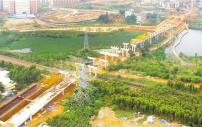 3月22日,在南方路跨線橋工程施工現(xiàn)場,跨線橋橋梁架設(shè)已經(jīng)完成。南通路(鐵路以西麻章路段)橋底地臺鋪設(shè)完工,上橋路段也已搭建鋪設(shè)。道路的排水、排污、樁基礎(chǔ)施工和部分路基以及地臺工程的建設(shè)基本完工。目前,跨線橋橋面的搭建已完成一半,工人們正在橋梁間的鐵架上加緊建模澆筑施工。