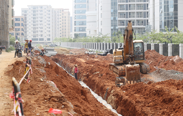湛江中心人民醫(yī)院將于10月實行整體搬遷,其新院周邊道路建設(shè)備受市民關(guān)注。日前,湛江中心人民醫(yī)院新院圍墻東側(cè)道路維修工程正在建設(shè)當(dāng)中。21日上午,記者來到施工現(xiàn)場,只見施工人員已深挖好渠道,在埋入排污管道。