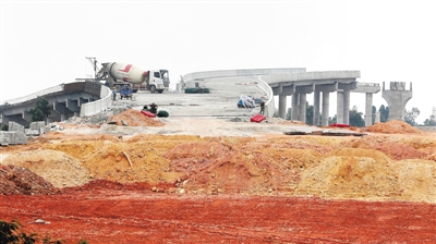 云湛高速坡頭互通路段施工現(xiàn)場。