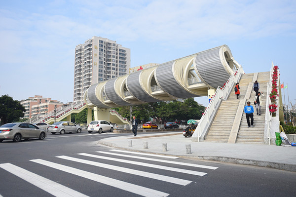 2017年12月7日,已投入使用的赤坎世貿(mào)人行天橋。?劉冀城 攝