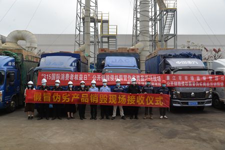 廉江市:3月11日上午,廉江市市場(chǎng)監(jiān)管局在湛江市粵綠環(huán)??萍加邢薰鹃_展了一場(chǎng)大規(guī)模的侵權(quán)假冒偽劣商品公開銷毀行動(dòng)。