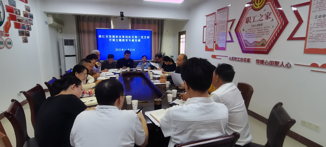 為深入開展學習貫徹習近平新時代中國特色社會主義思想主題教育,11月23日下午,湛江市發(fā)展和改革局第二黨支部在局4樓會議室開展主題教育專題黨課。會議由黨支部副書記劉夏冰同志主持,第二黨支部全體黨員及相關(guān)科室人員參加會議。